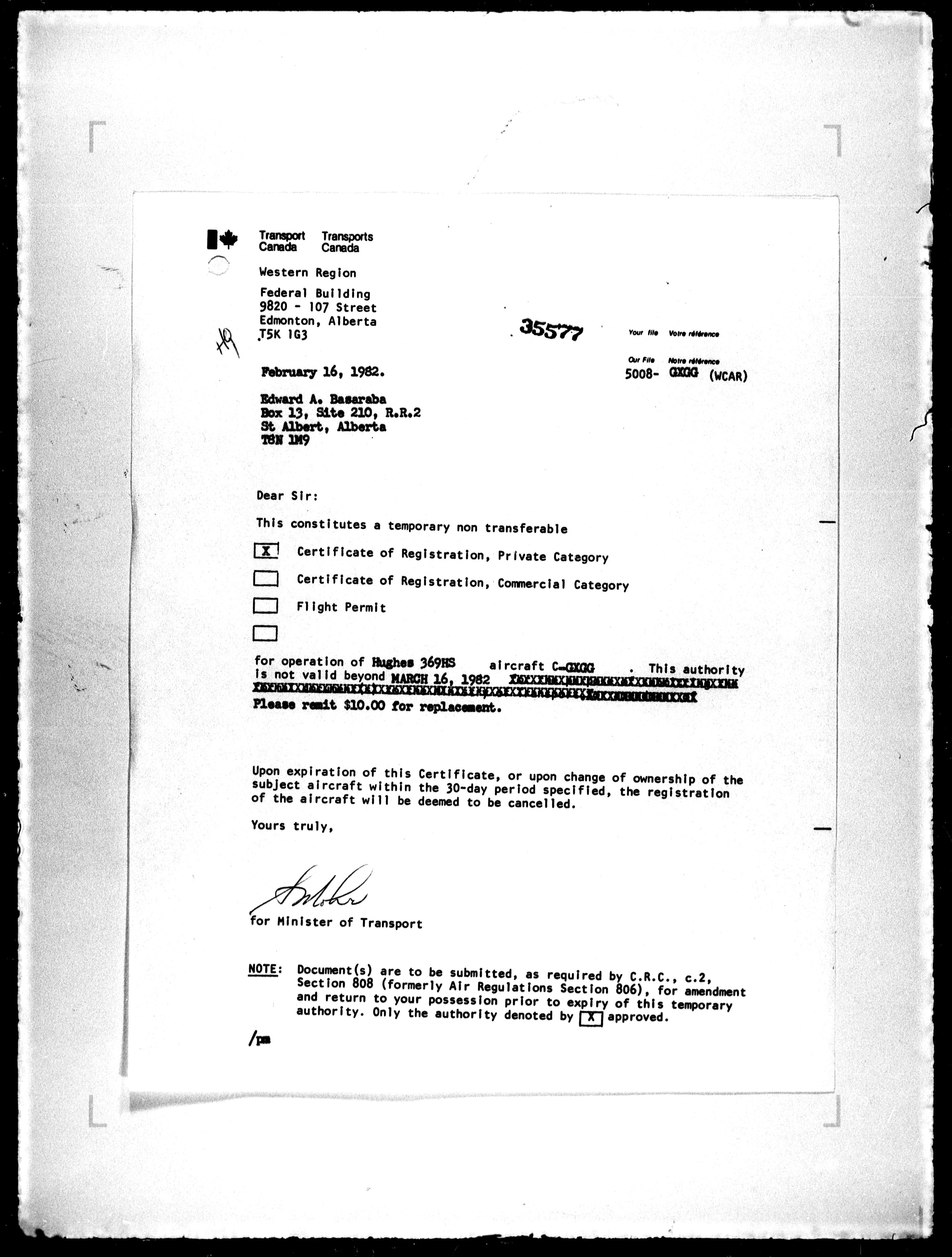 Department of Transport : Civil aircraft registration, inspection and operation files, block 5008, 1920-1986 - 7886