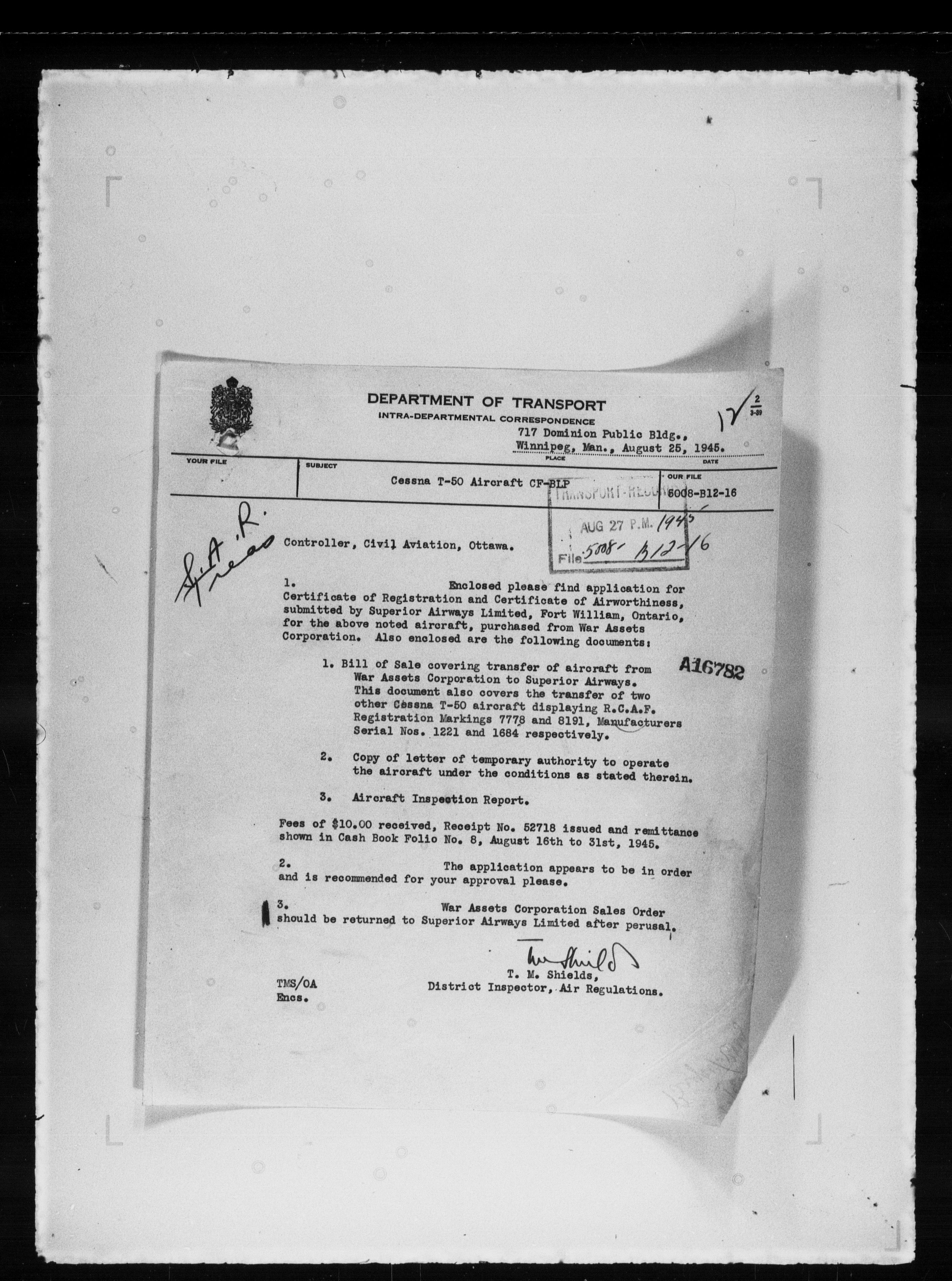 Department of Transport : Civil aircraft registration, inspection and operation files, block 5008, 1920-1986 - 7888