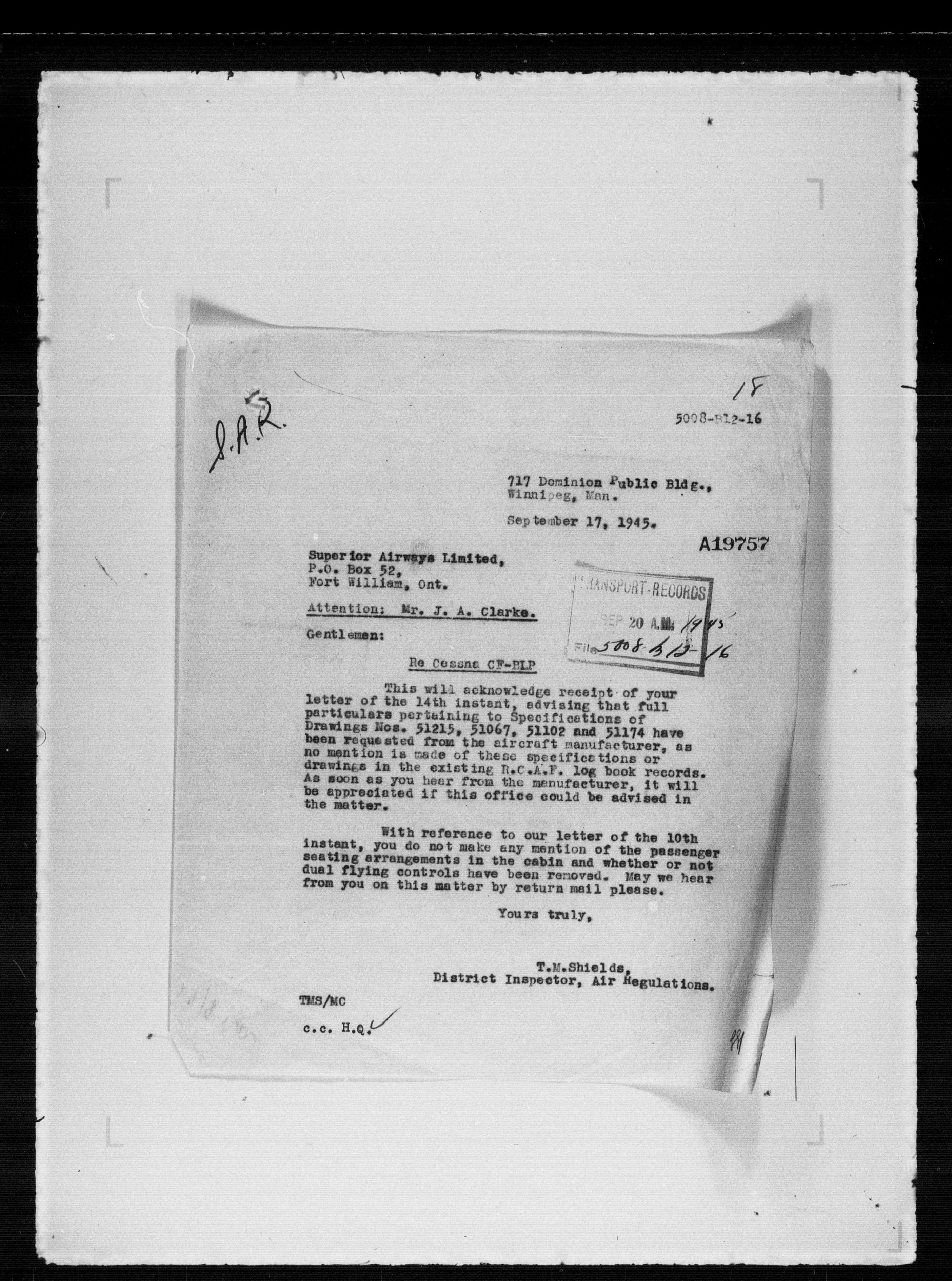 Department of Transport : Civil aircraft registration, inspection and operation files, block 5008, 1920-1986 - 7888