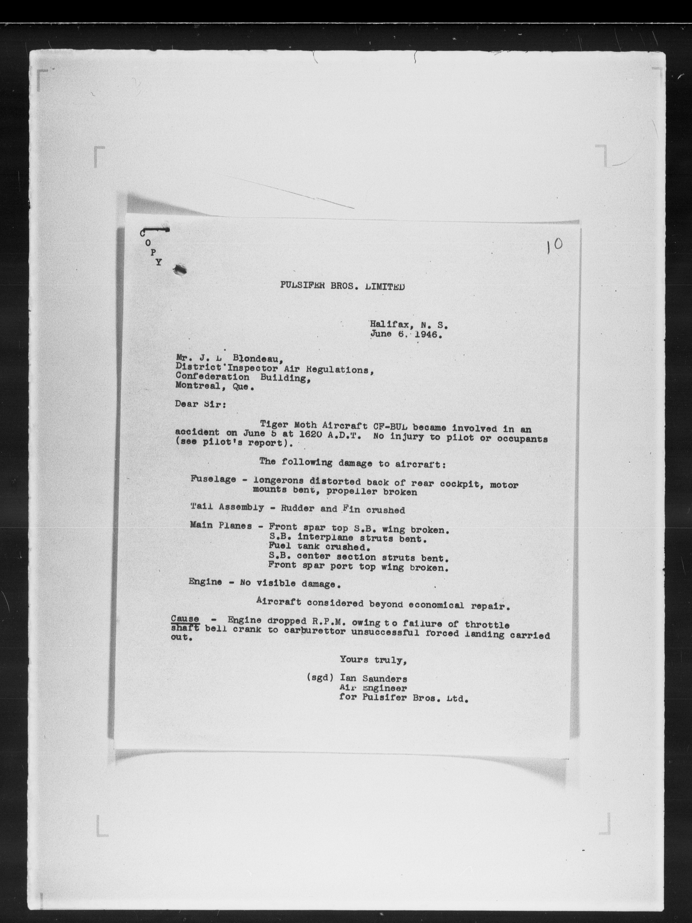 Department of Transport : Civil aircraft registration, inspection and operation files, 1920-1986 : T-7889
