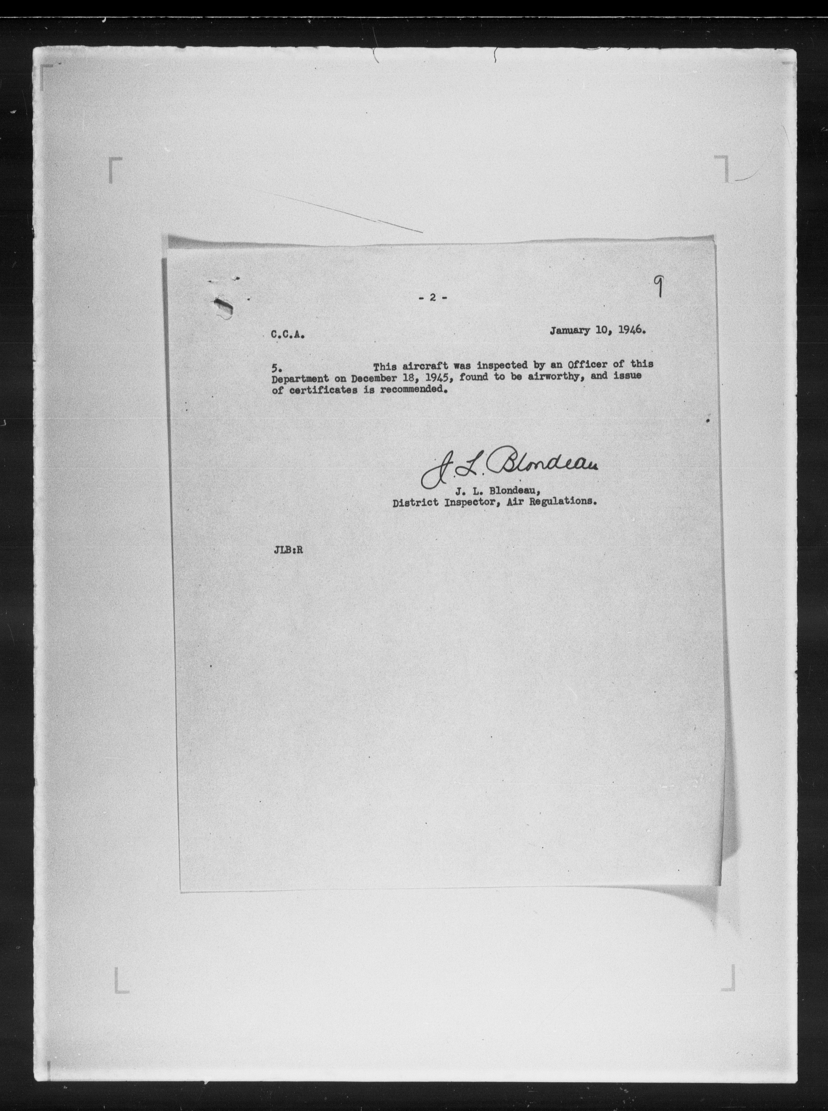 Department of Transport : Civil aircraft registration, inspection and operation files, block 5008, 1920-1986 - 7889