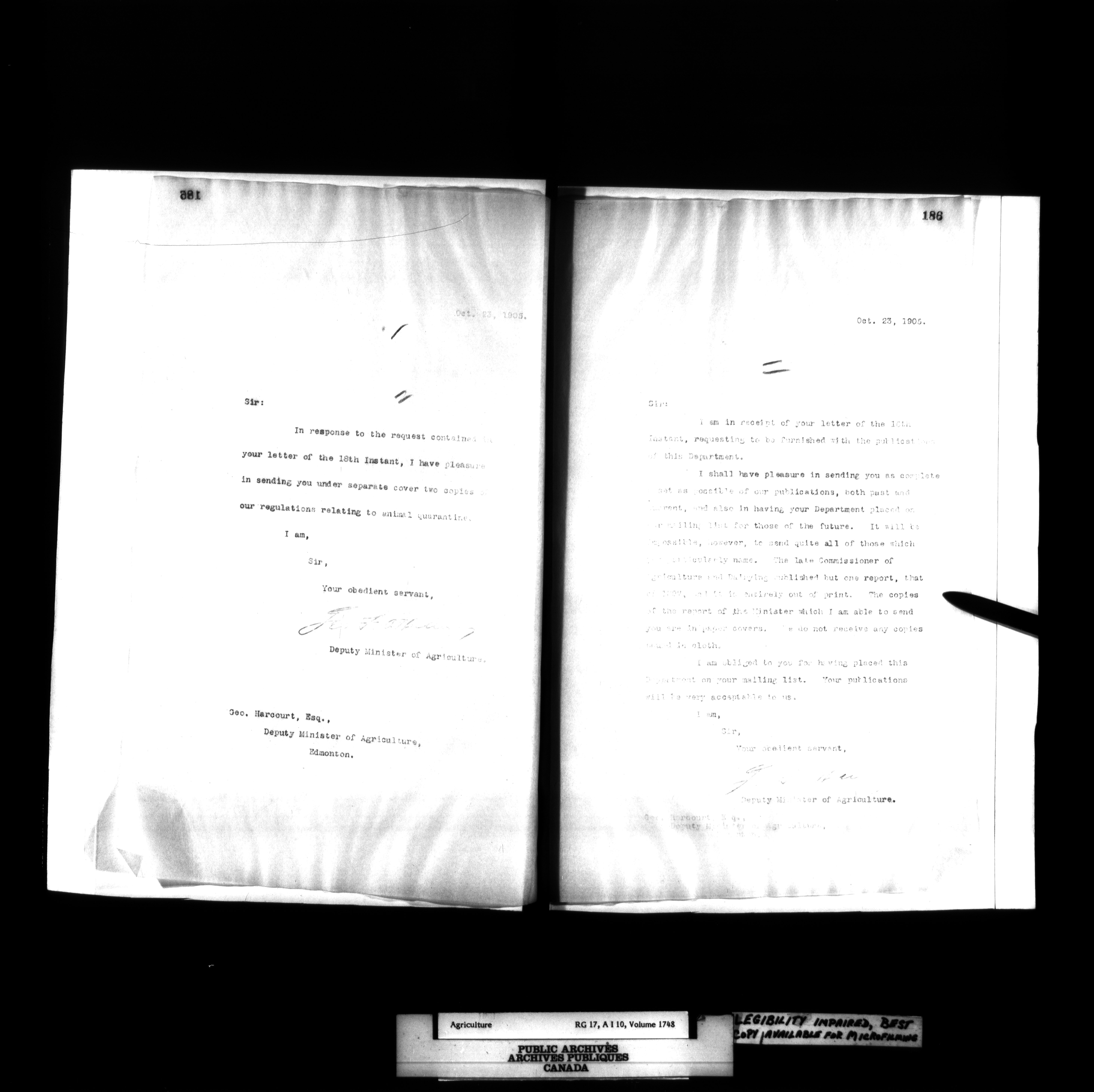 Department of Agriculture: Deputy Minister's letterbooks, 1888-1916 : T-789