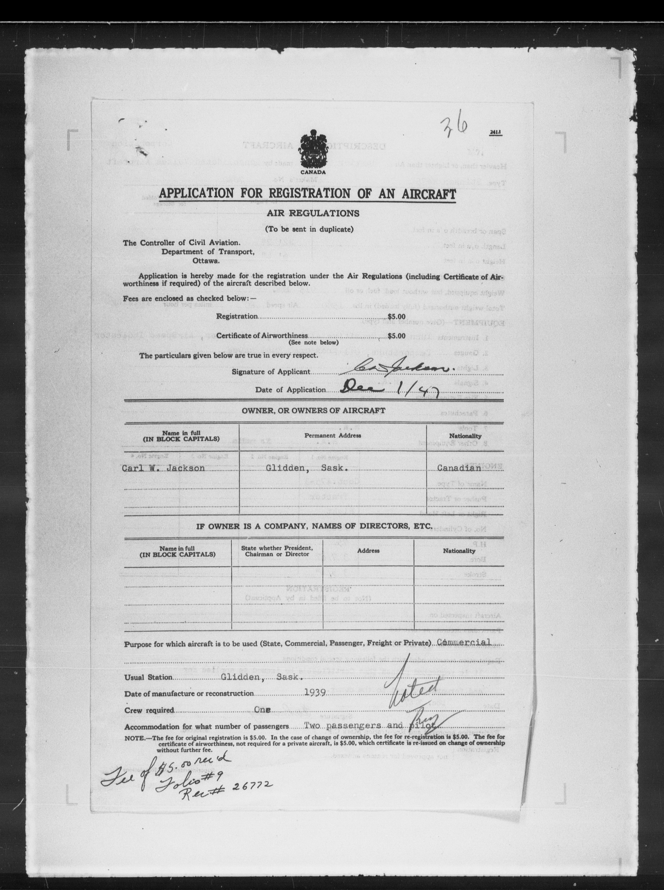 Department of Transport : Civil aircraft registration, inspection and operation files, block 5008, 1920-1986 - 7890