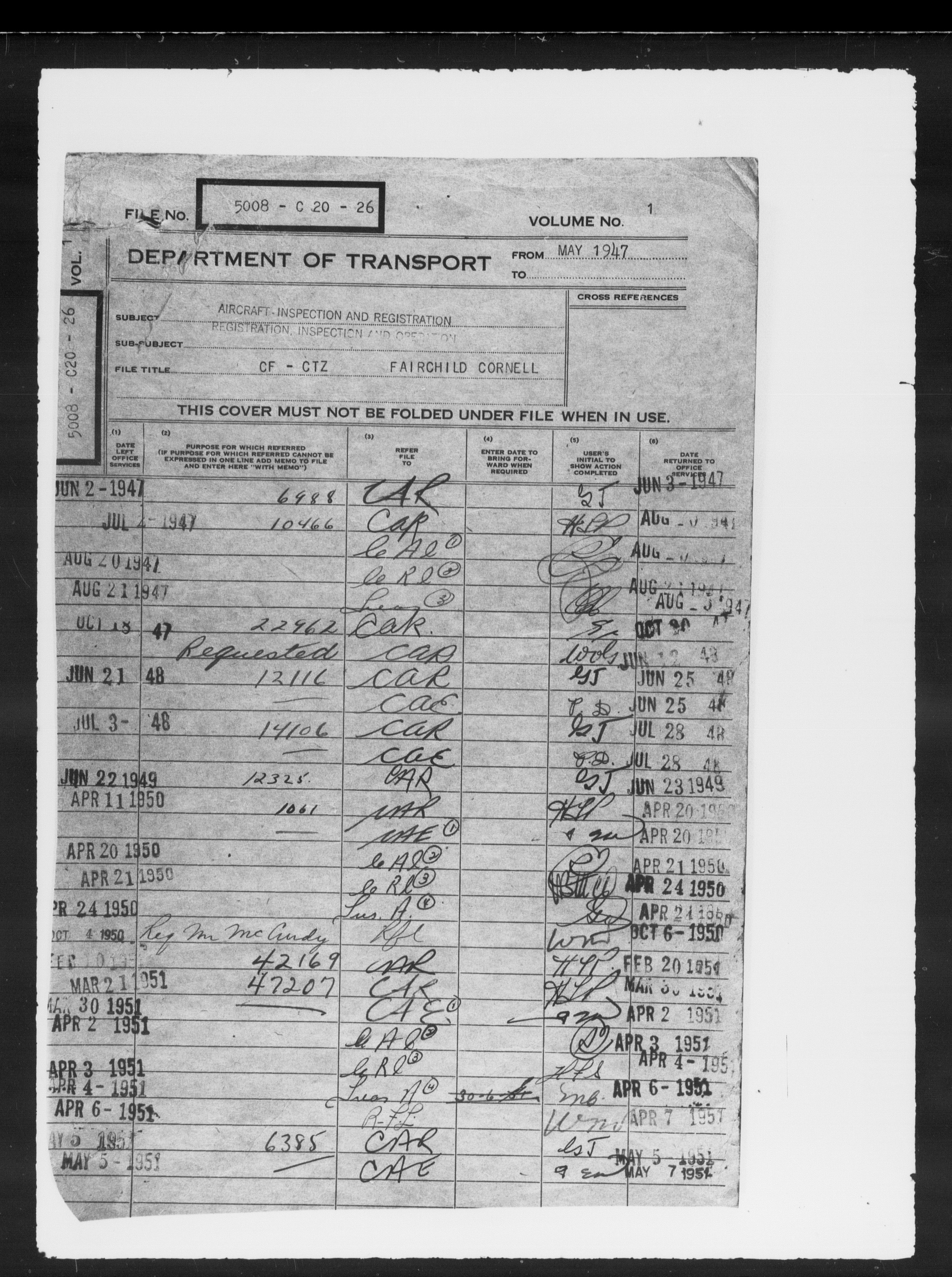 Department of Transport : Civil aircraft registration, inspection and operation files, block 5008, 1920-1986 - 7892