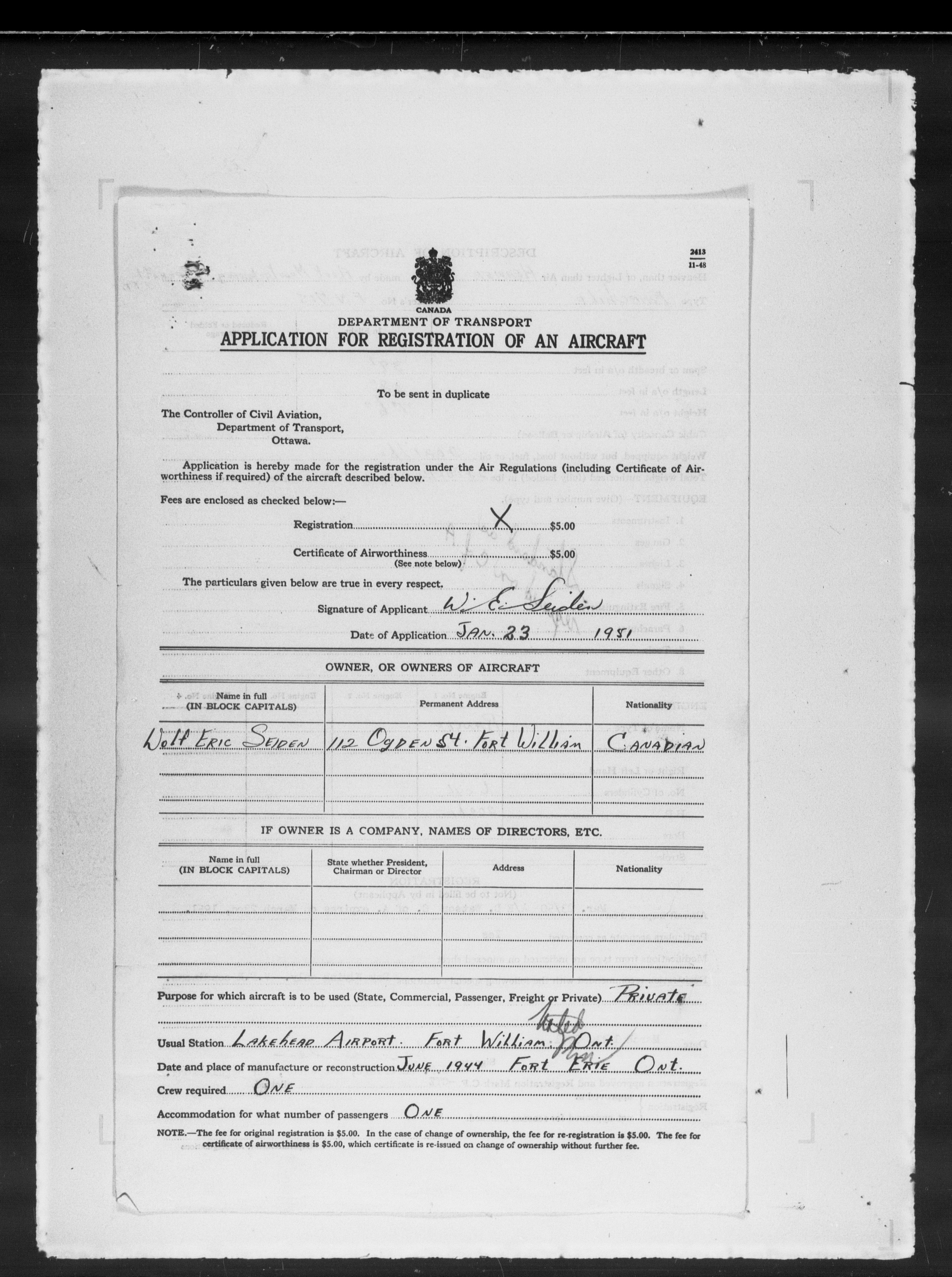 Department of Transport : Civil aircraft registration, inspection and operation files, block 5008, 1920-1986 - 7892