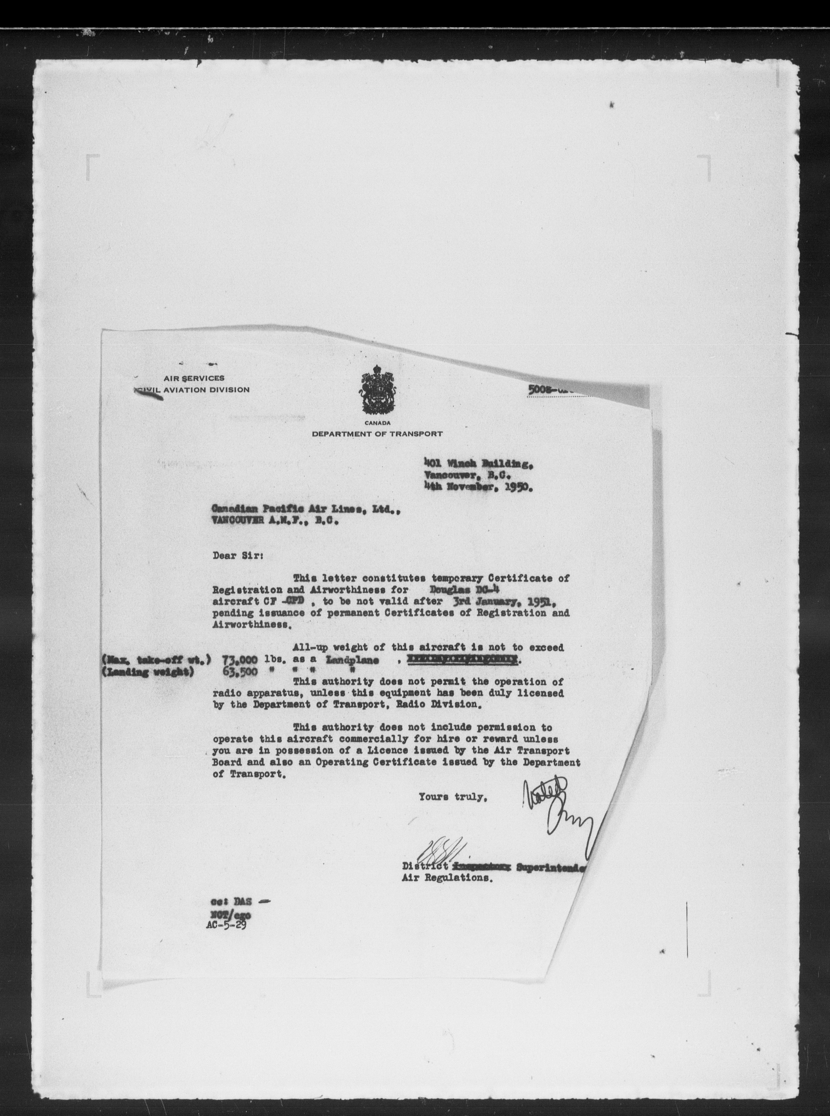 Department of Transport : Civil aircraft registration, inspection and operation files, block 5008, 1920-1986 - 7892