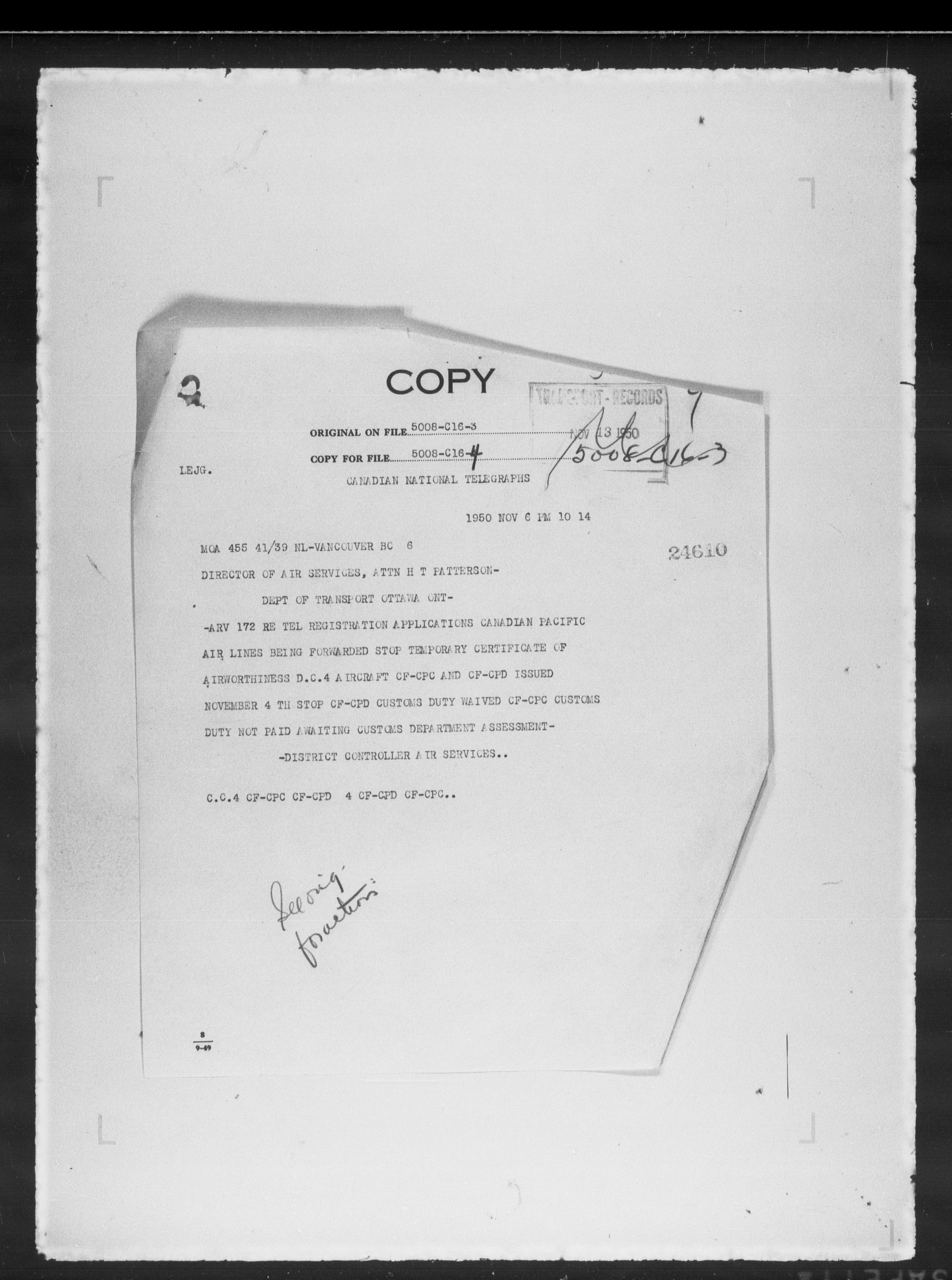 Department of Transport : Civil aircraft registration, inspection and operation files, block 5008, 1920-1986 - 7892