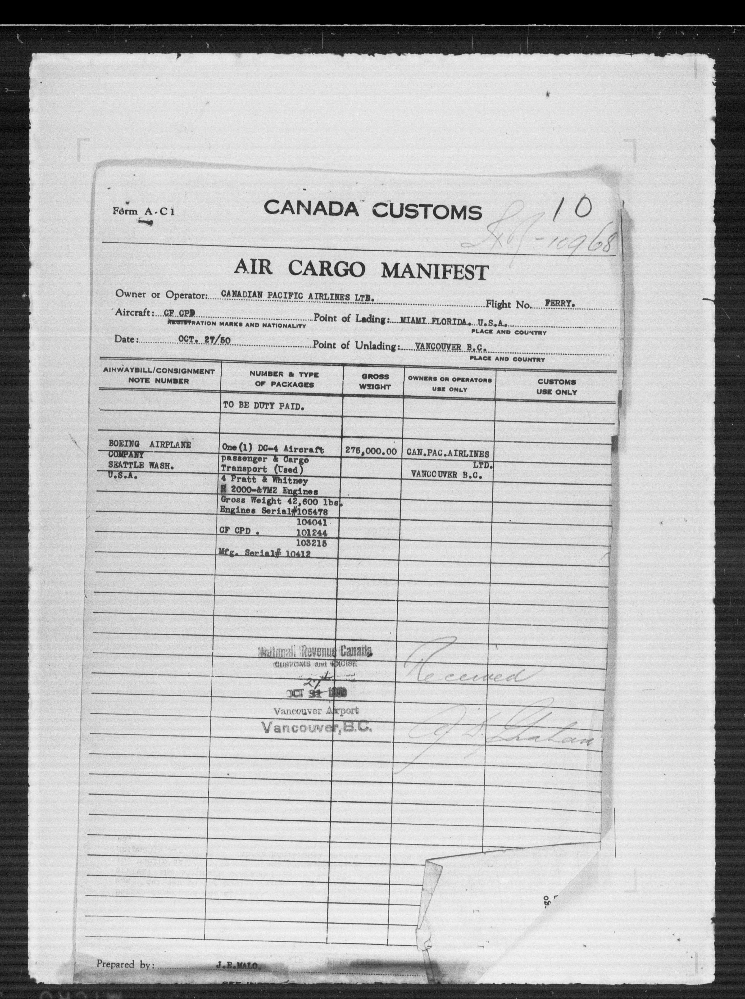 Department of Transport : Civil aircraft registration, inspection and operation files, block 5008, 1920-1986 - 7892