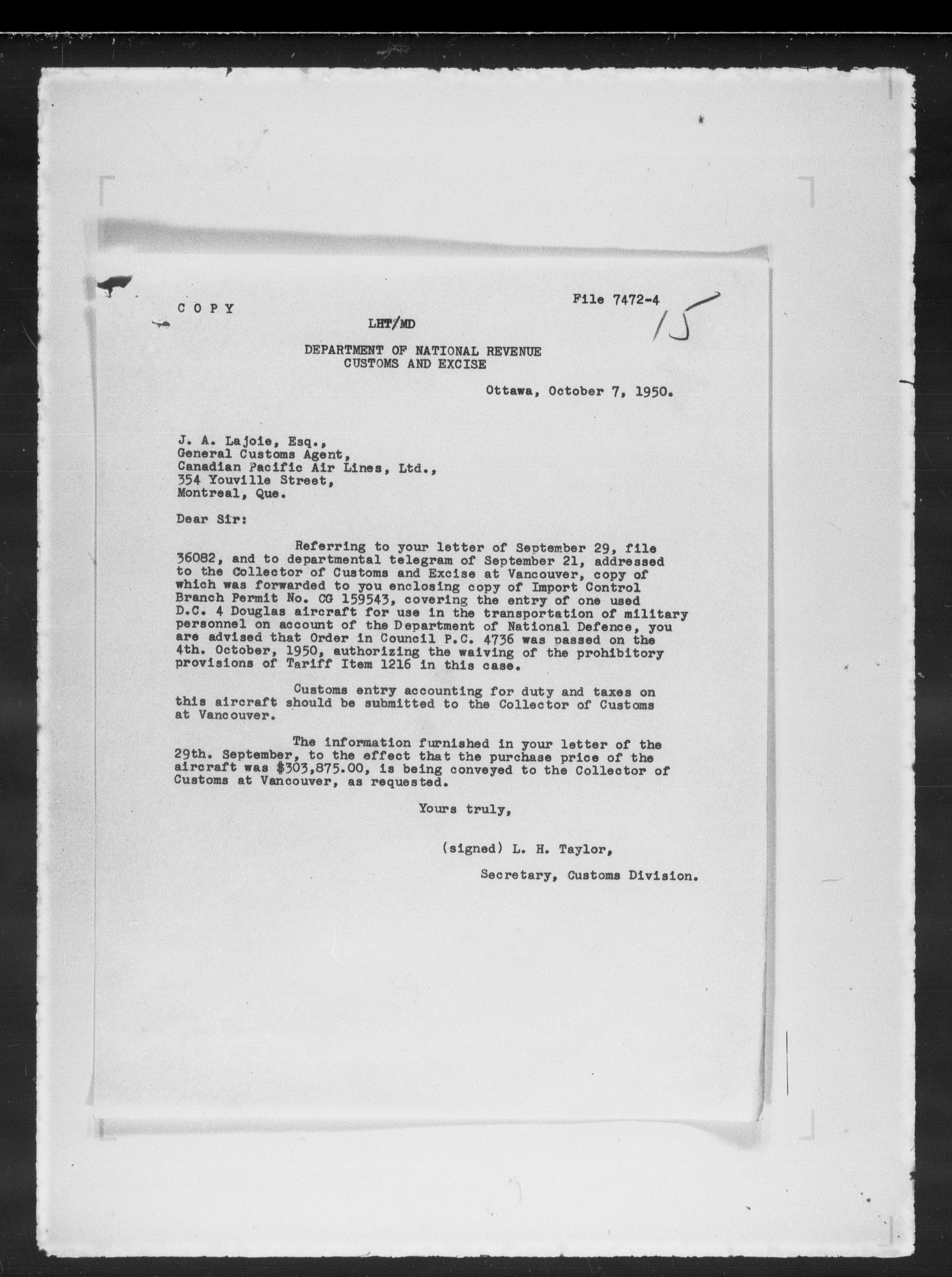 Department of Transport : Civil aircraft registration, inspection and operation files, block 5008, 1920-1986 - 7892
