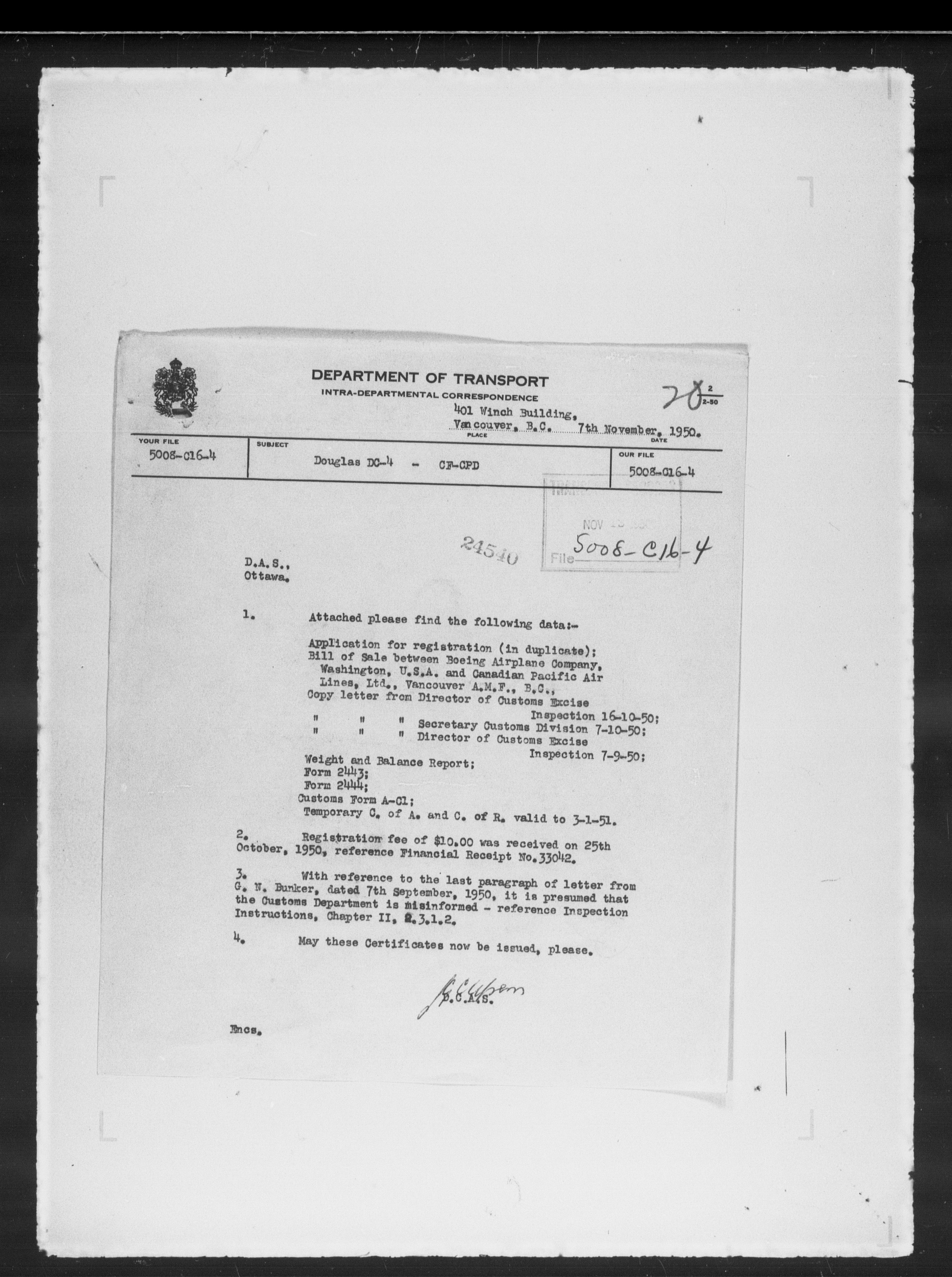 Department of Transport : Civil aircraft registration, inspection and operation files, block 5008, 1920-1986 - 7892