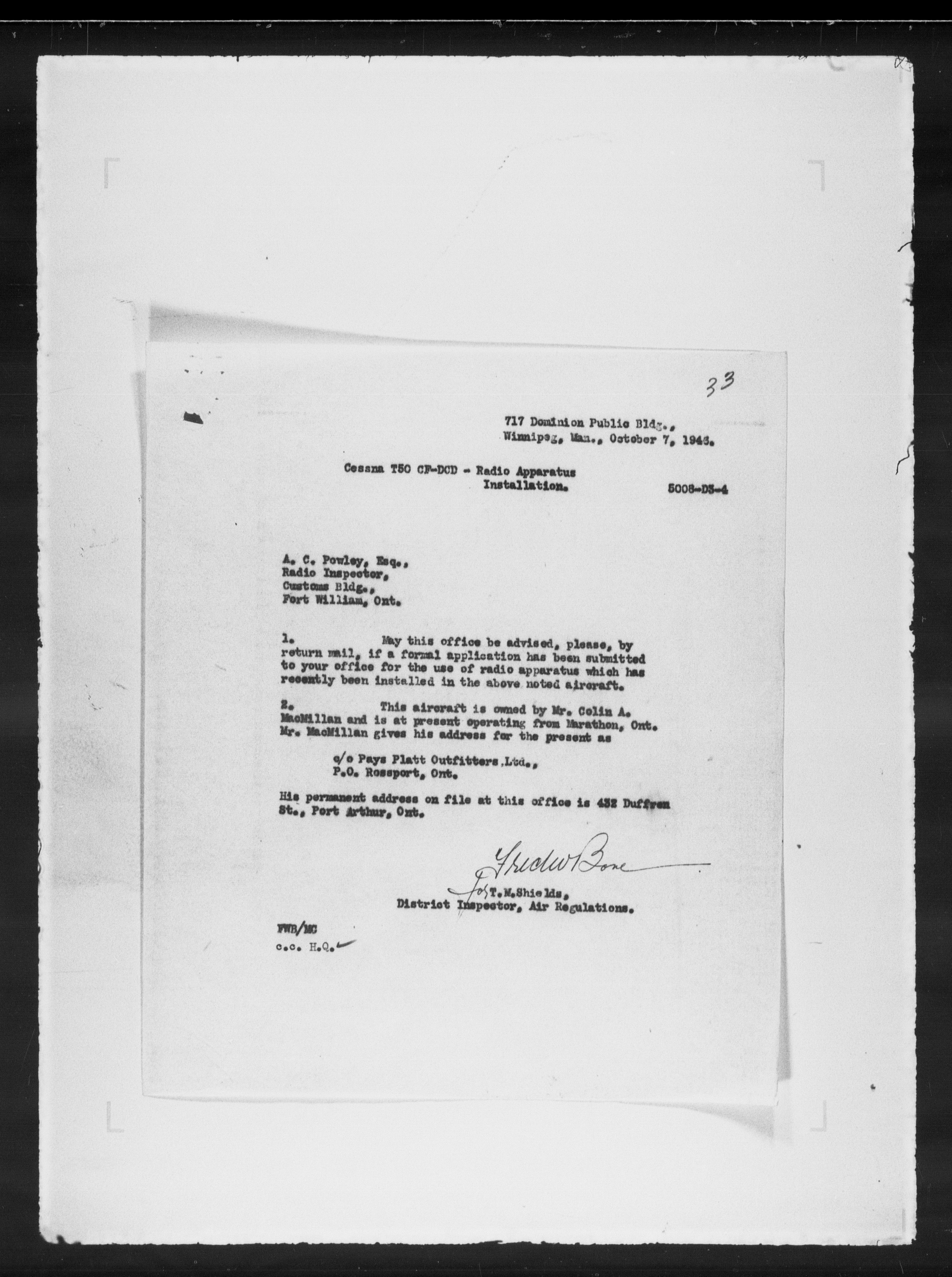 Department of Transport : Civil aircraft registration, inspection and operation files, 1920-1986 : T-7893