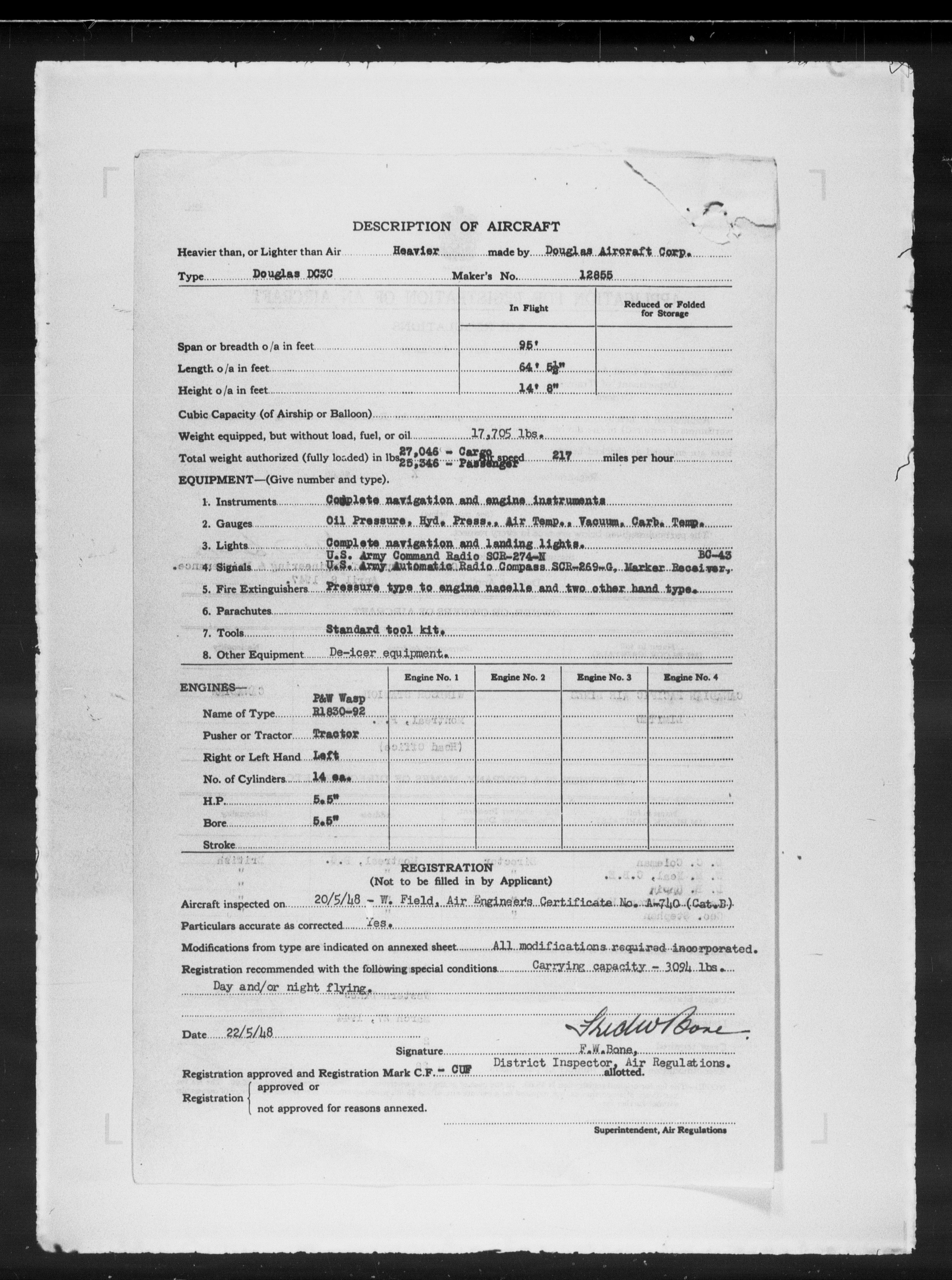 Department of Transport : Civil aircraft registration, inspection and operation files, block 5008, 1920-1986 - 7893