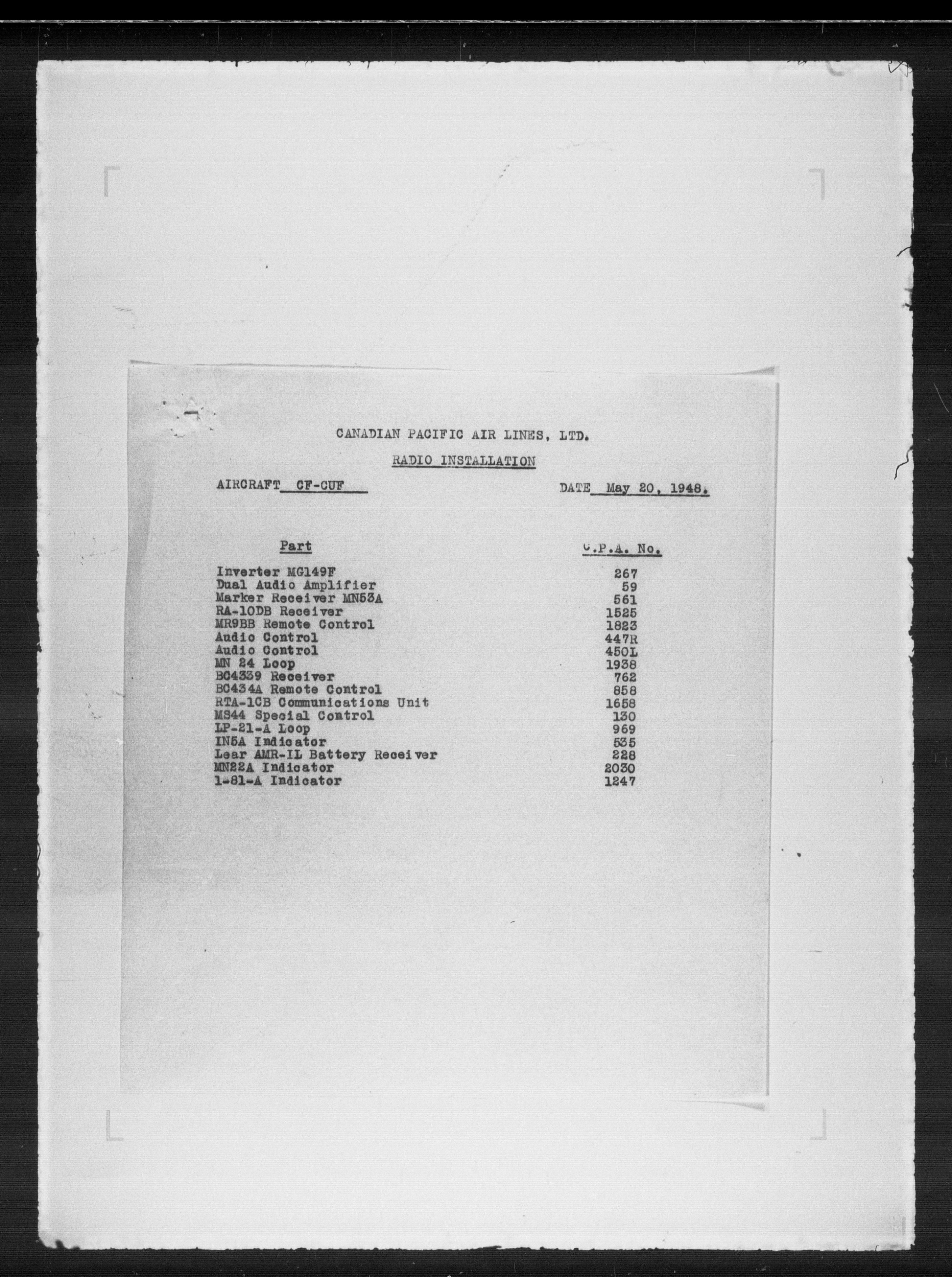 Department of Transport : Civil aircraft registration, inspection and operation files, block 5008, 1920-1986 - 7893