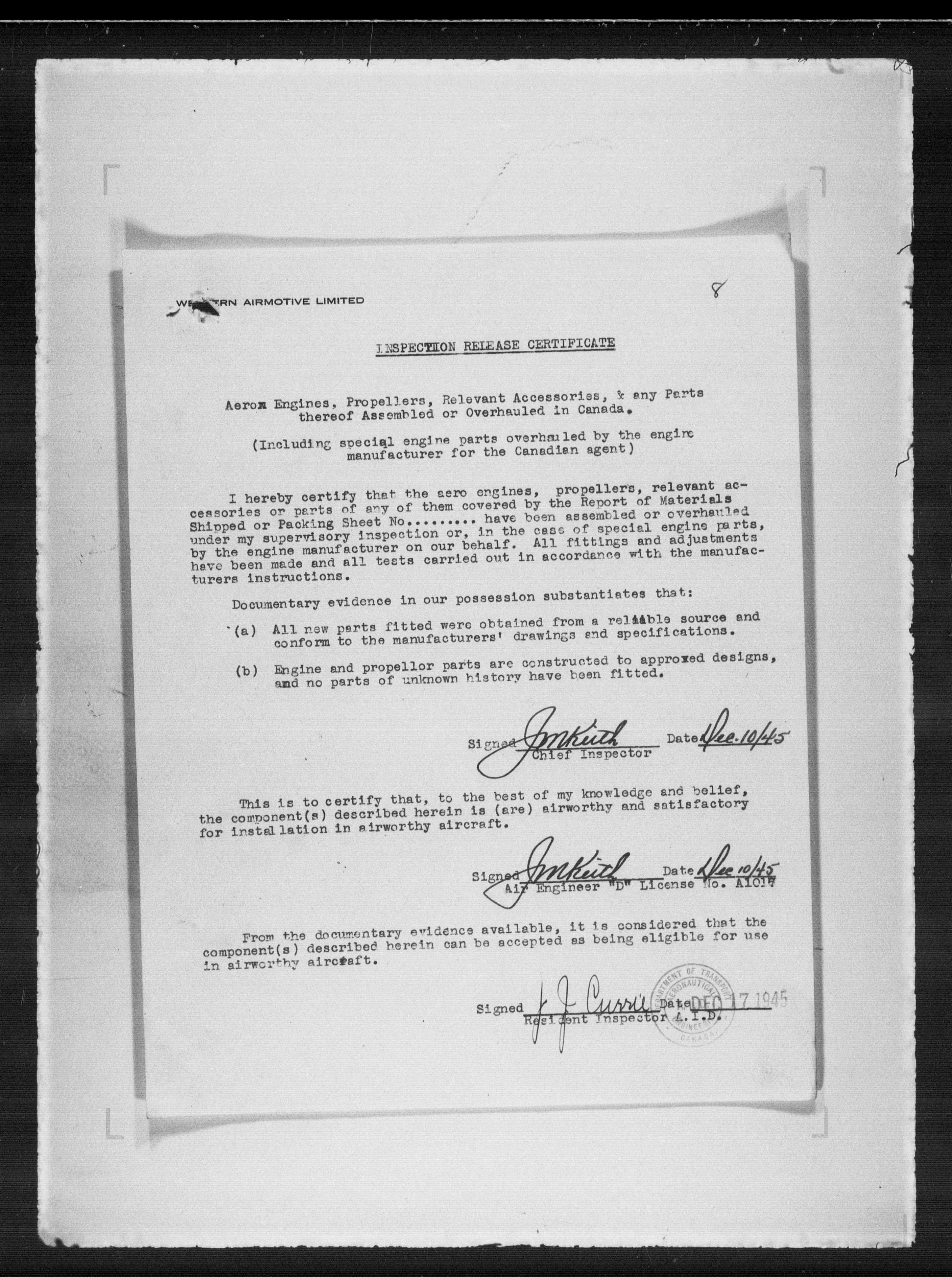 Department of Transport : Civil aircraft registration, inspection and operation files, block 5008, 1920-1986 - 7893