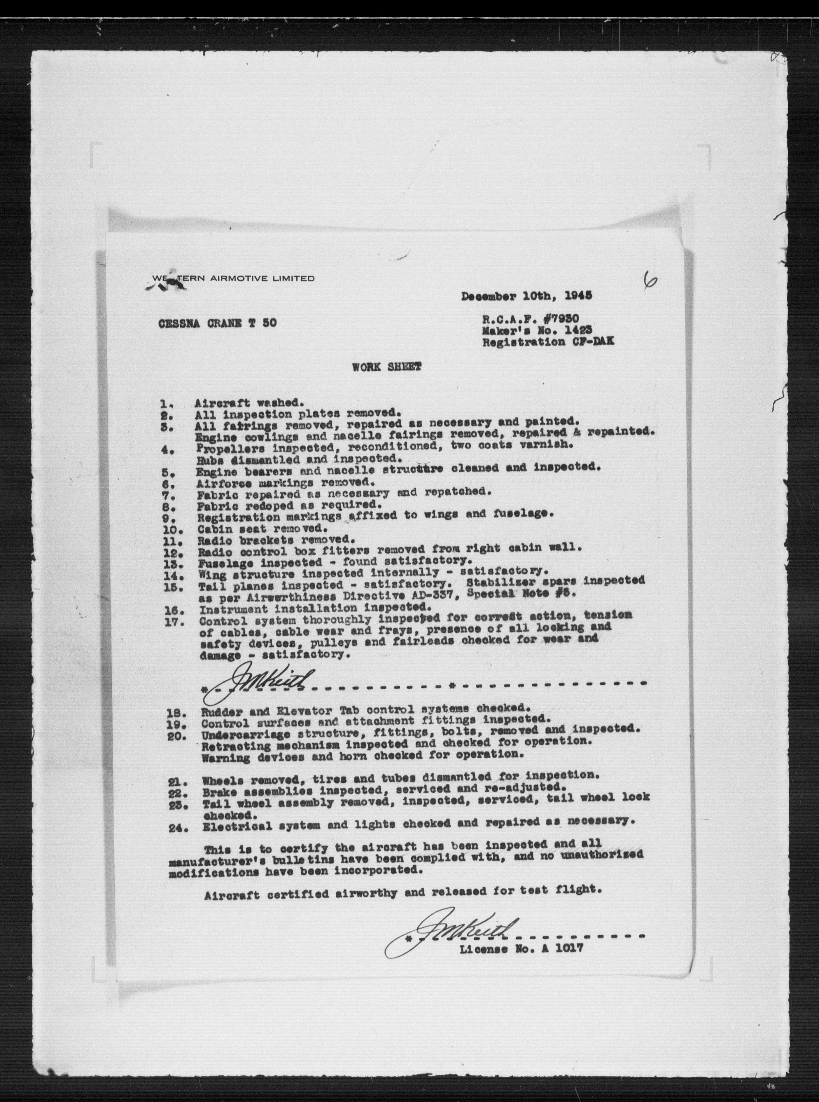 Department of Transport : Civil aircraft registration, inspection and operation files, block 5008, 1920-1986 - 7893