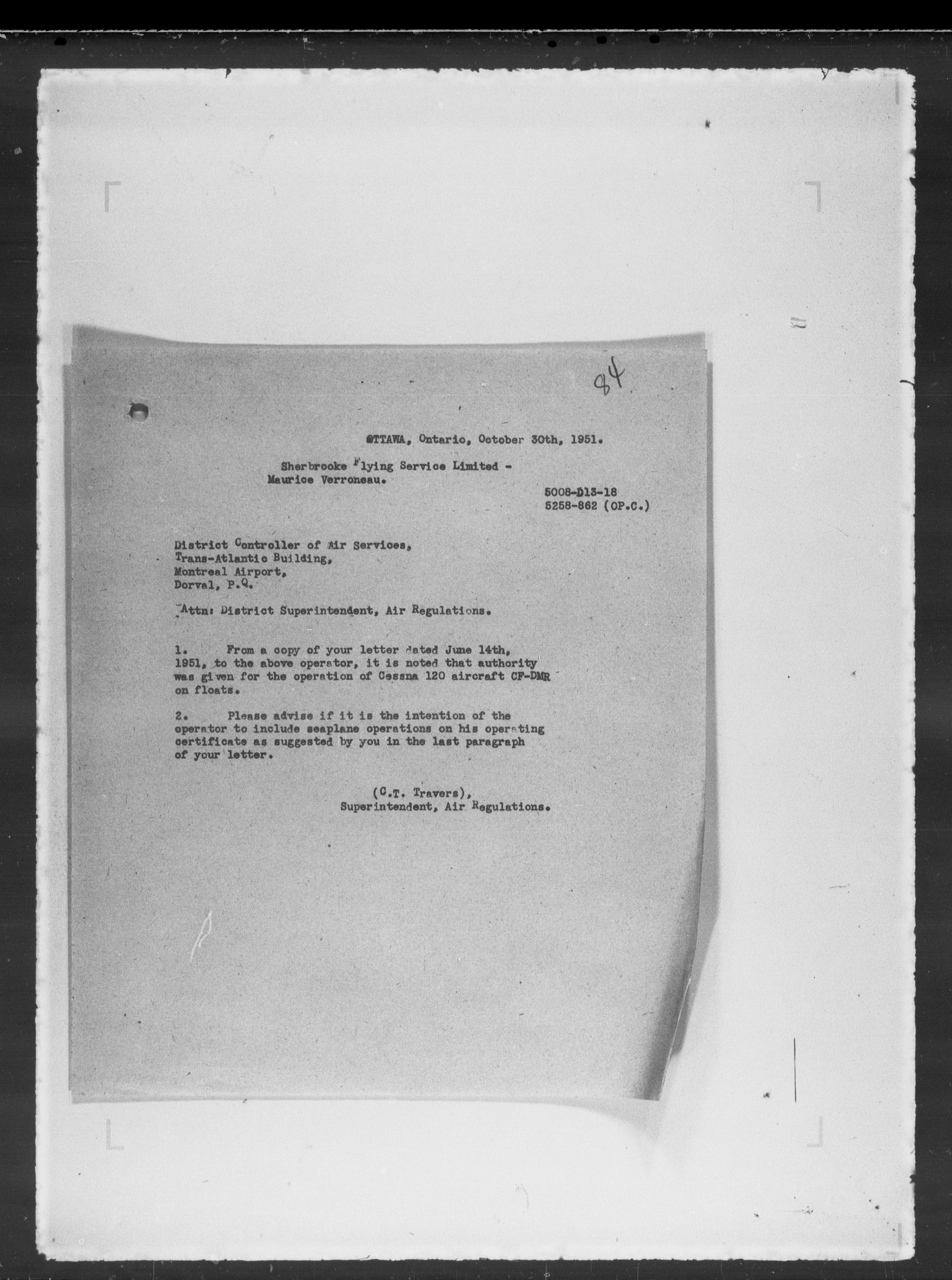 Department of Transport : Civil aircraft registration, inspection and operation files, block 5008, 1920-1986 - 7895