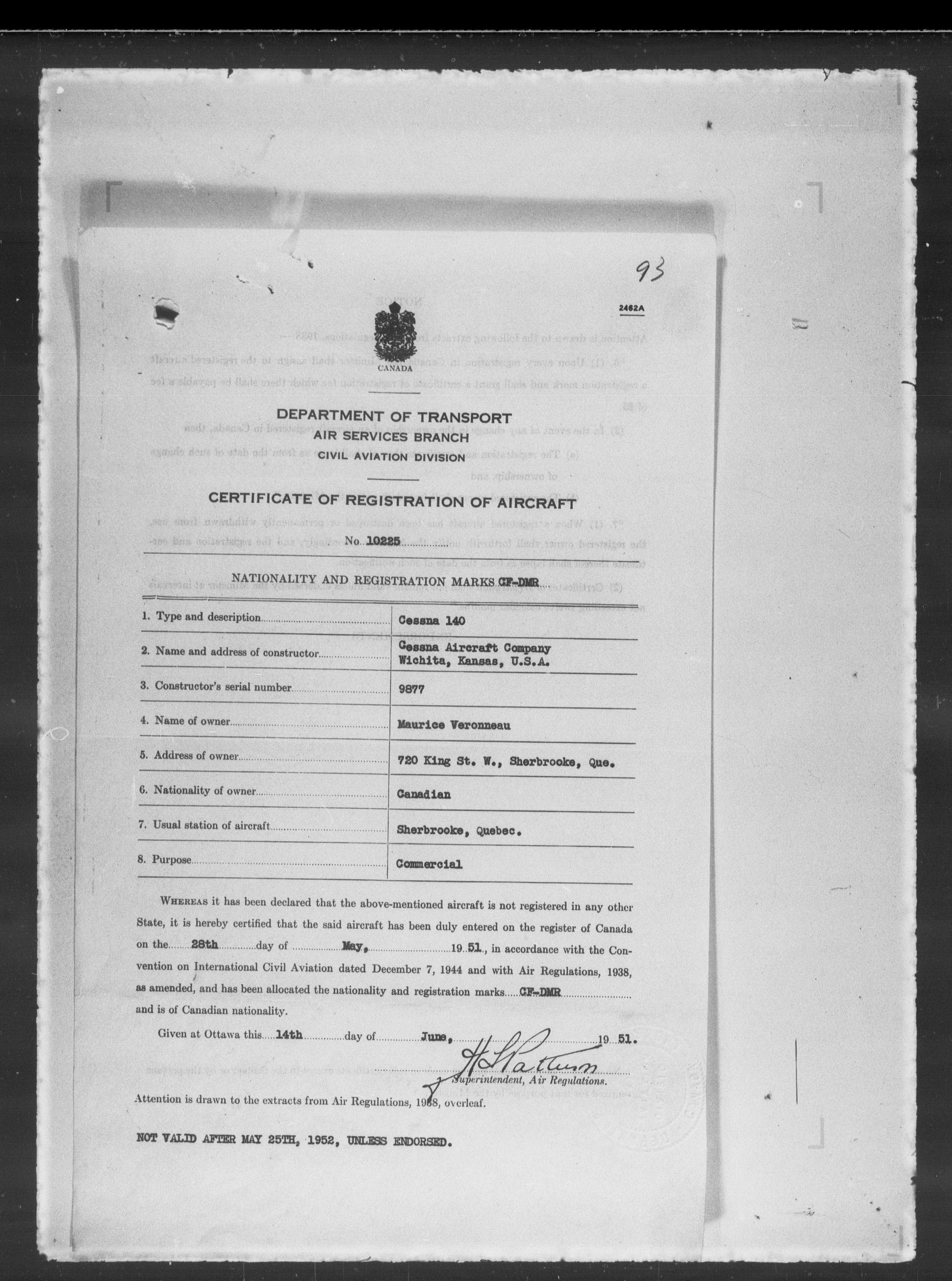 Department of Transport : Civil aircraft registration, inspection and operation files, block 5008, 1920-1986 - 7895