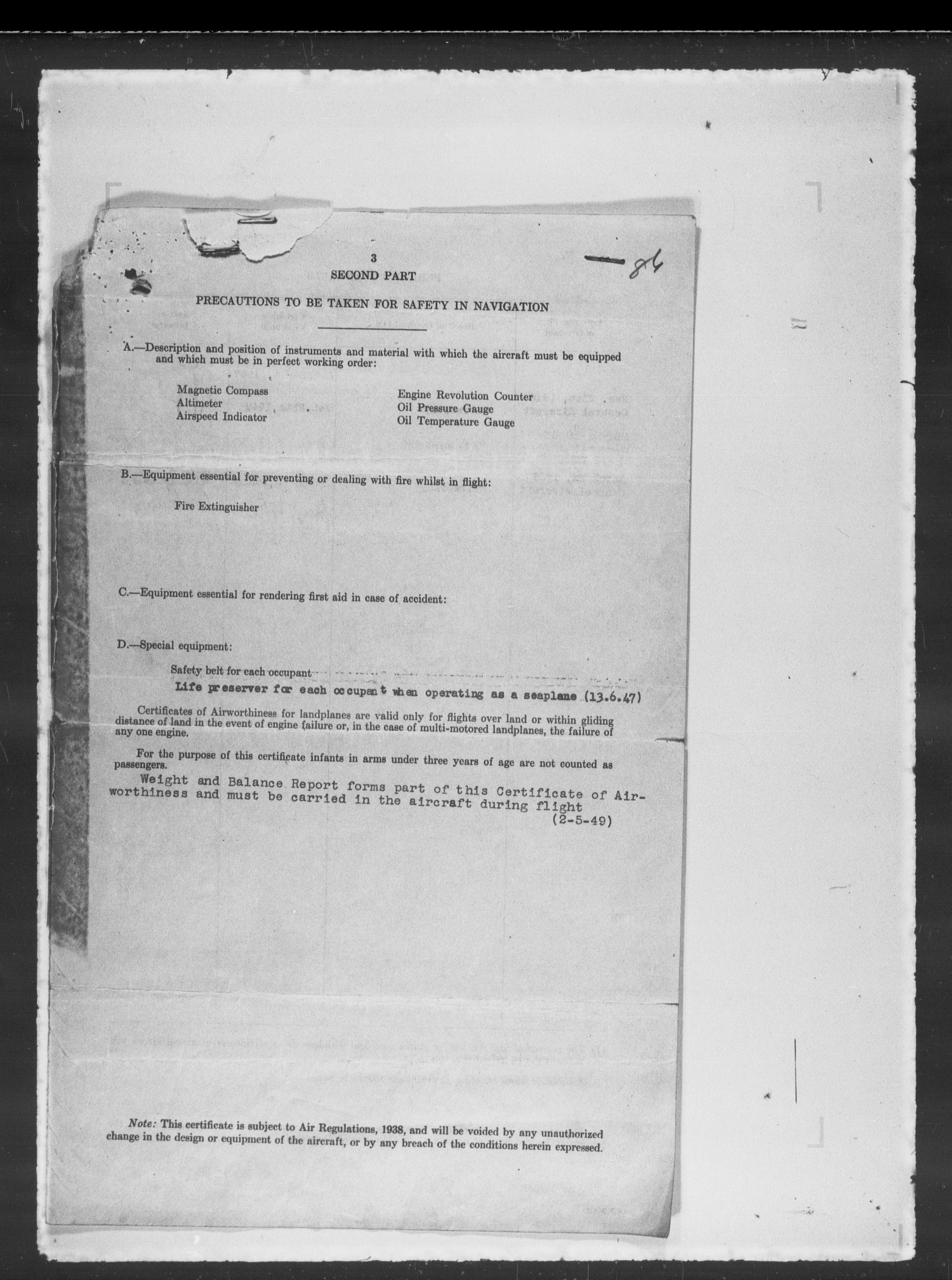 Department of Transport : Civil aircraft registration, inspection and operation files, block 5008, 1920-1986 - 7895