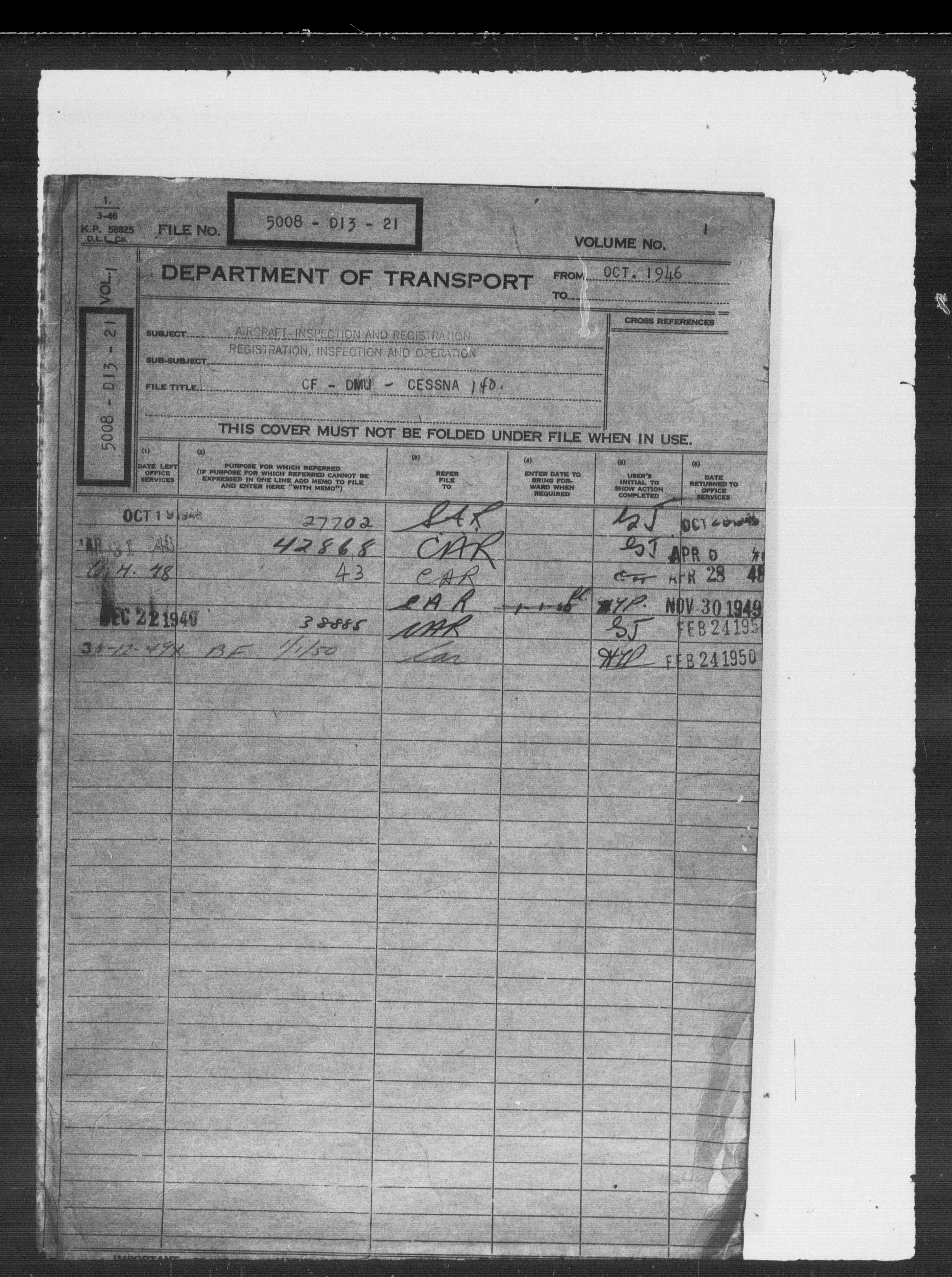 Department of Transport : Civil aircraft registration, inspection and operation files, block 5008, 1920-1986 - 7895