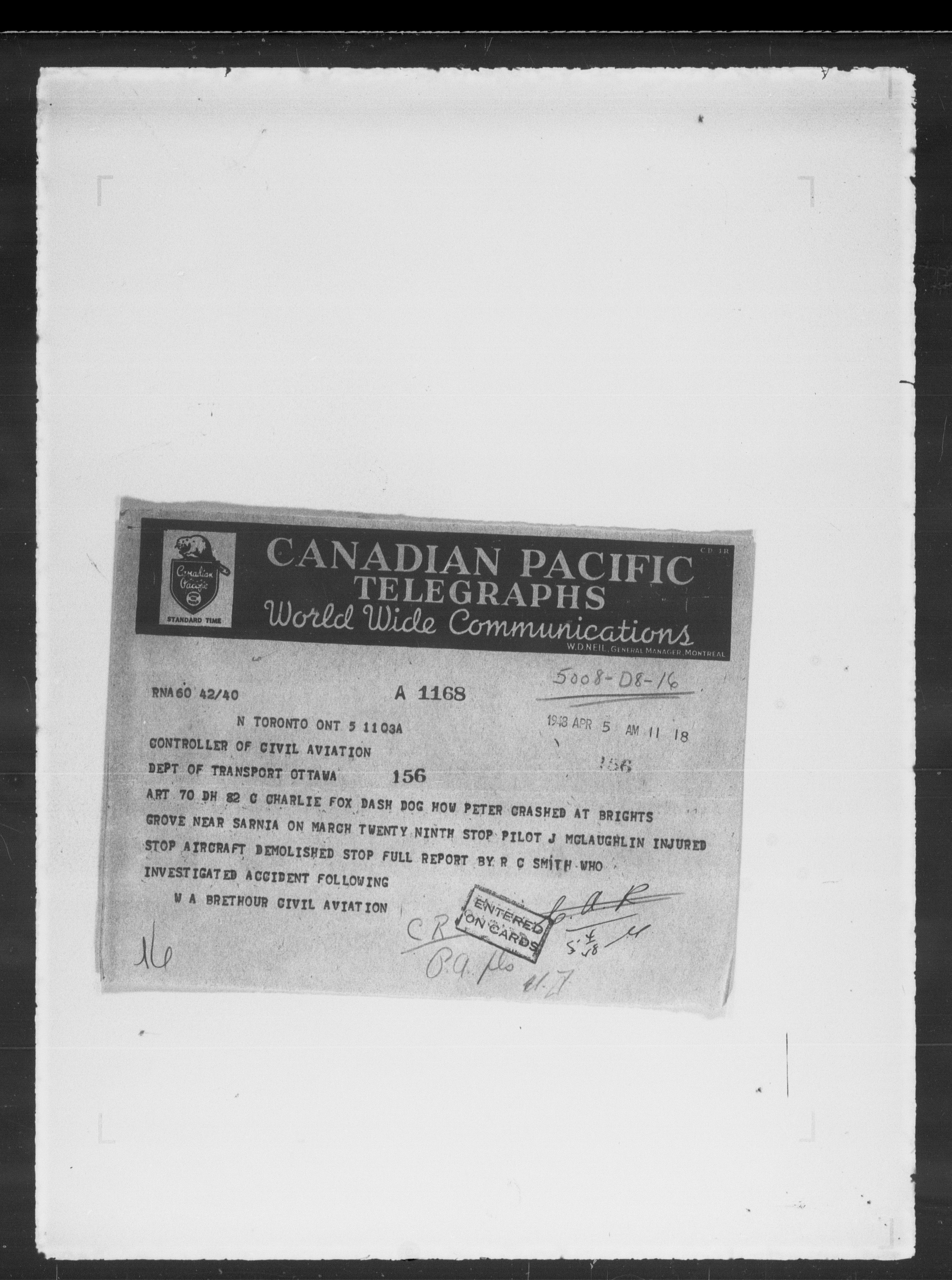 Department of Transport : Civil aircraft registration, inspection and operation files, block 5008, 1920-1986 - 7895