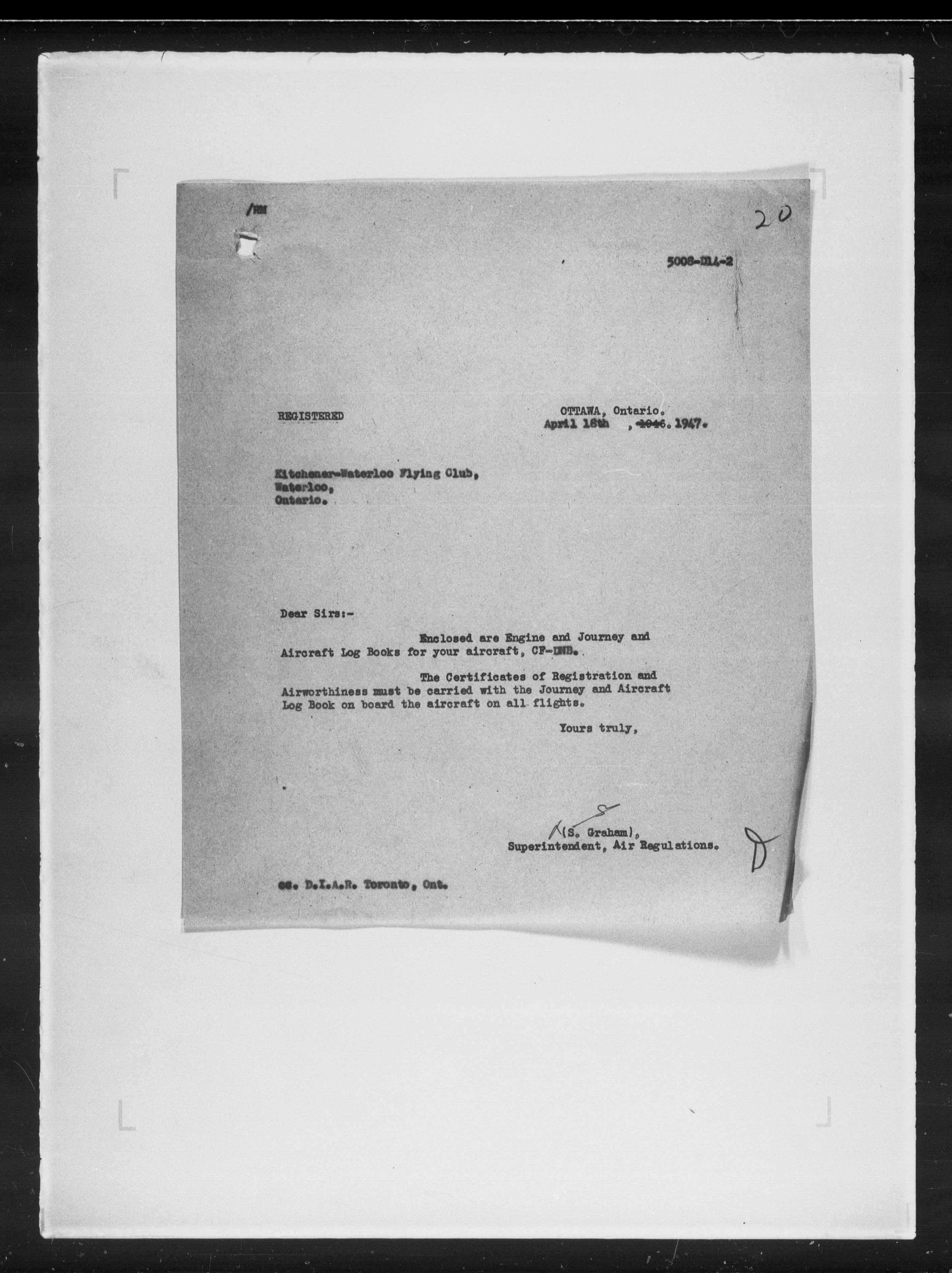 Department of Transport : Civil aircraft registration, inspection and operation files, block 5008, 1920-1986 - 7896