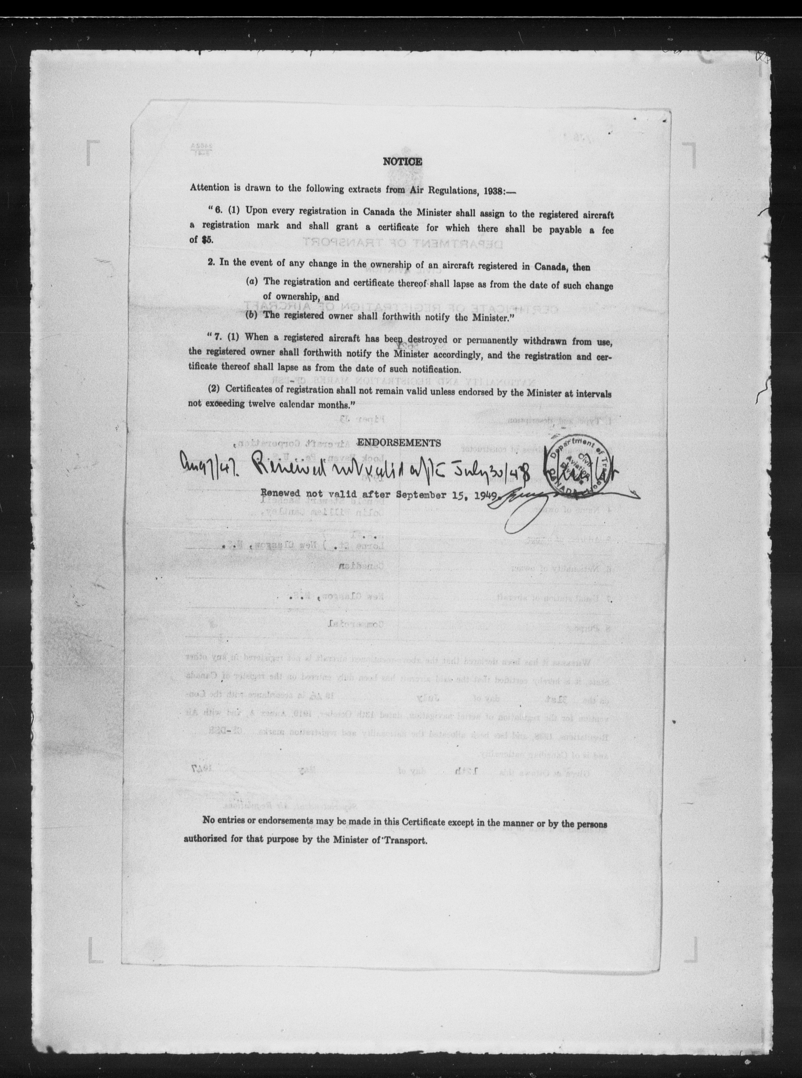 Department of Transport : Civil aircraft registration, inspection and operation files, block 5008, 1920-1986 - 7897
