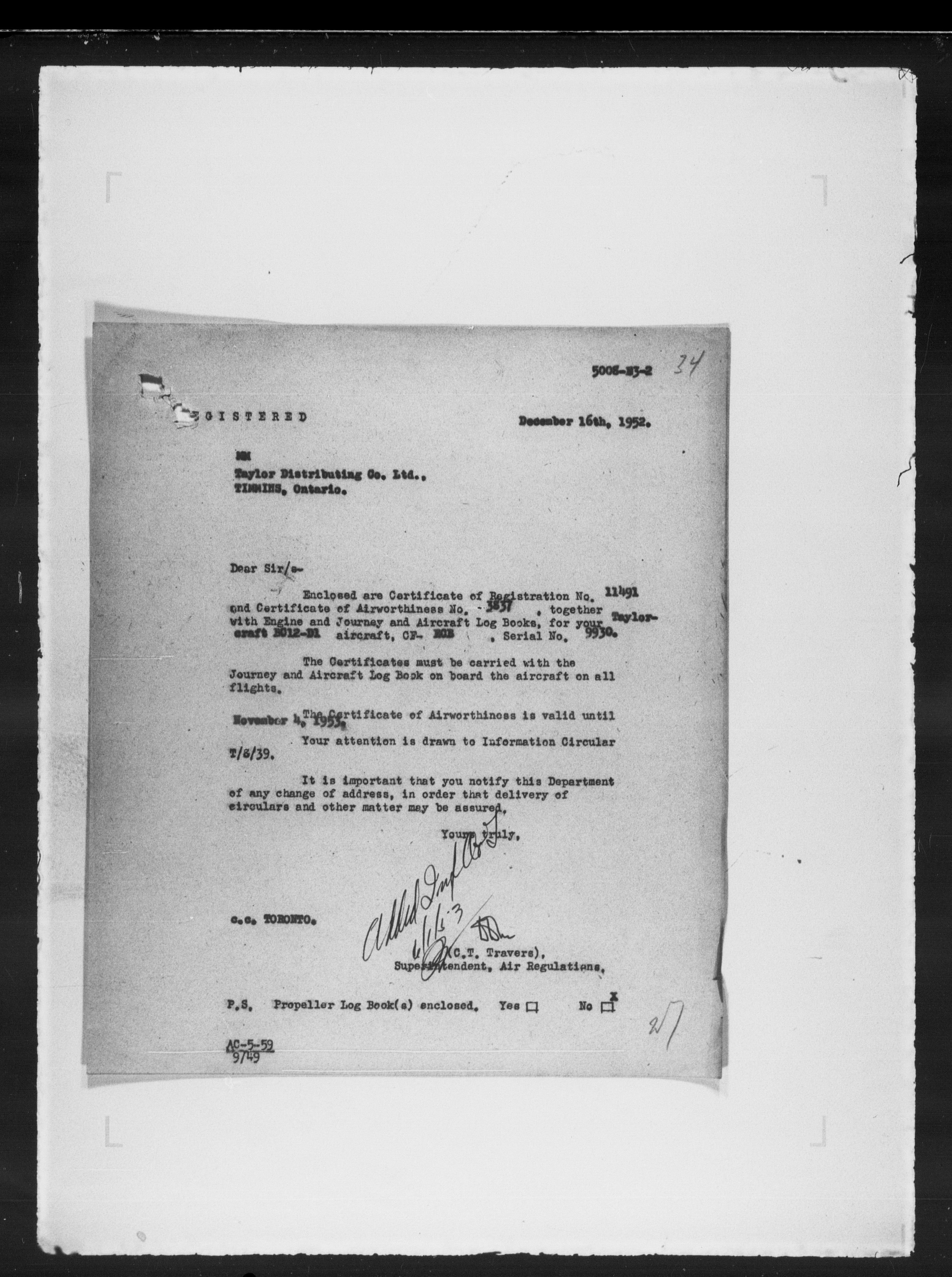 Department of Transport : Civil aircraft registration, inspection and operation files, 1920-1986 : T-7897