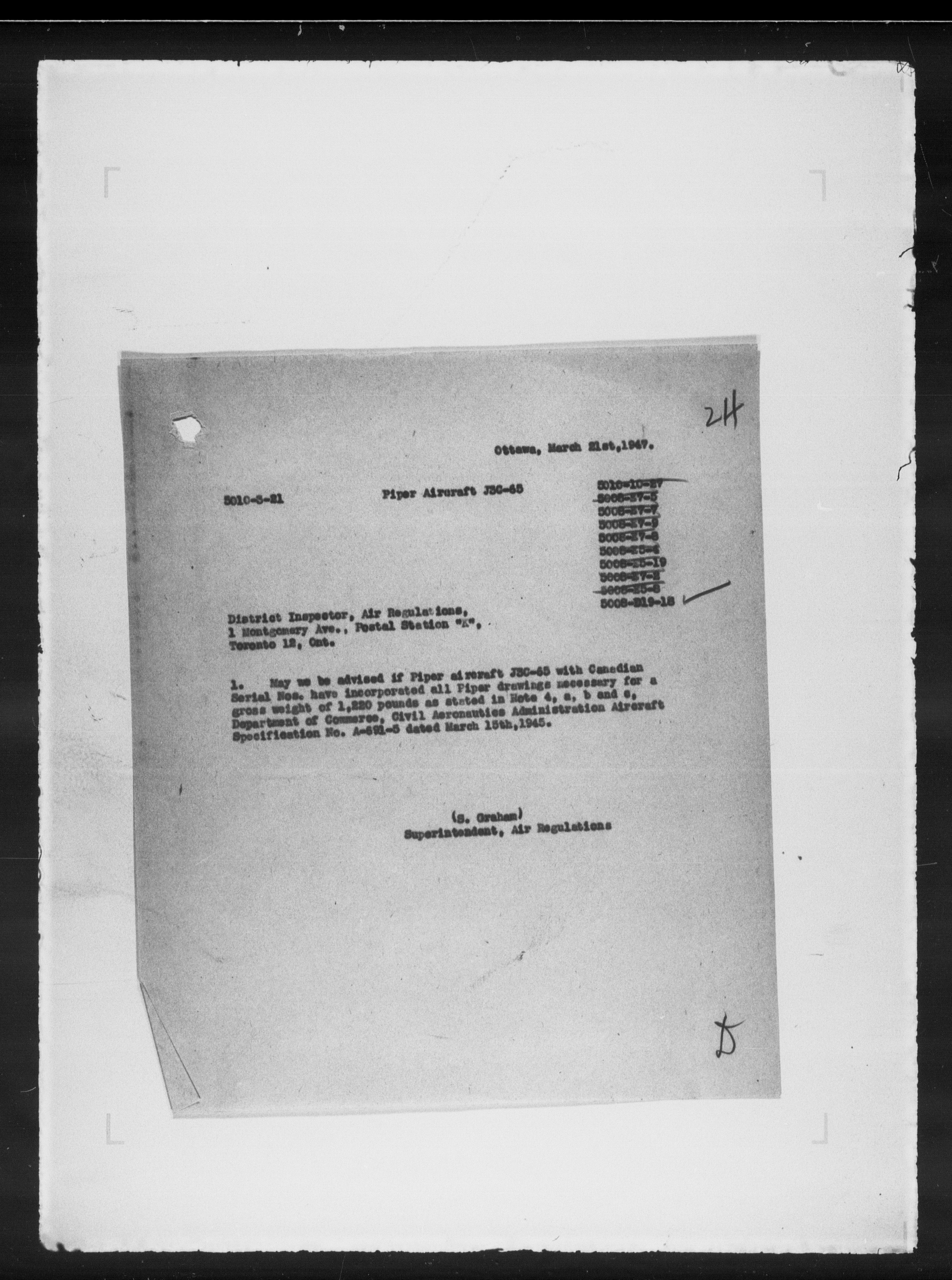 Department of Transport : Civil aircraft registration, inspection and operation files, block 5008, 1920-1986 - 7897