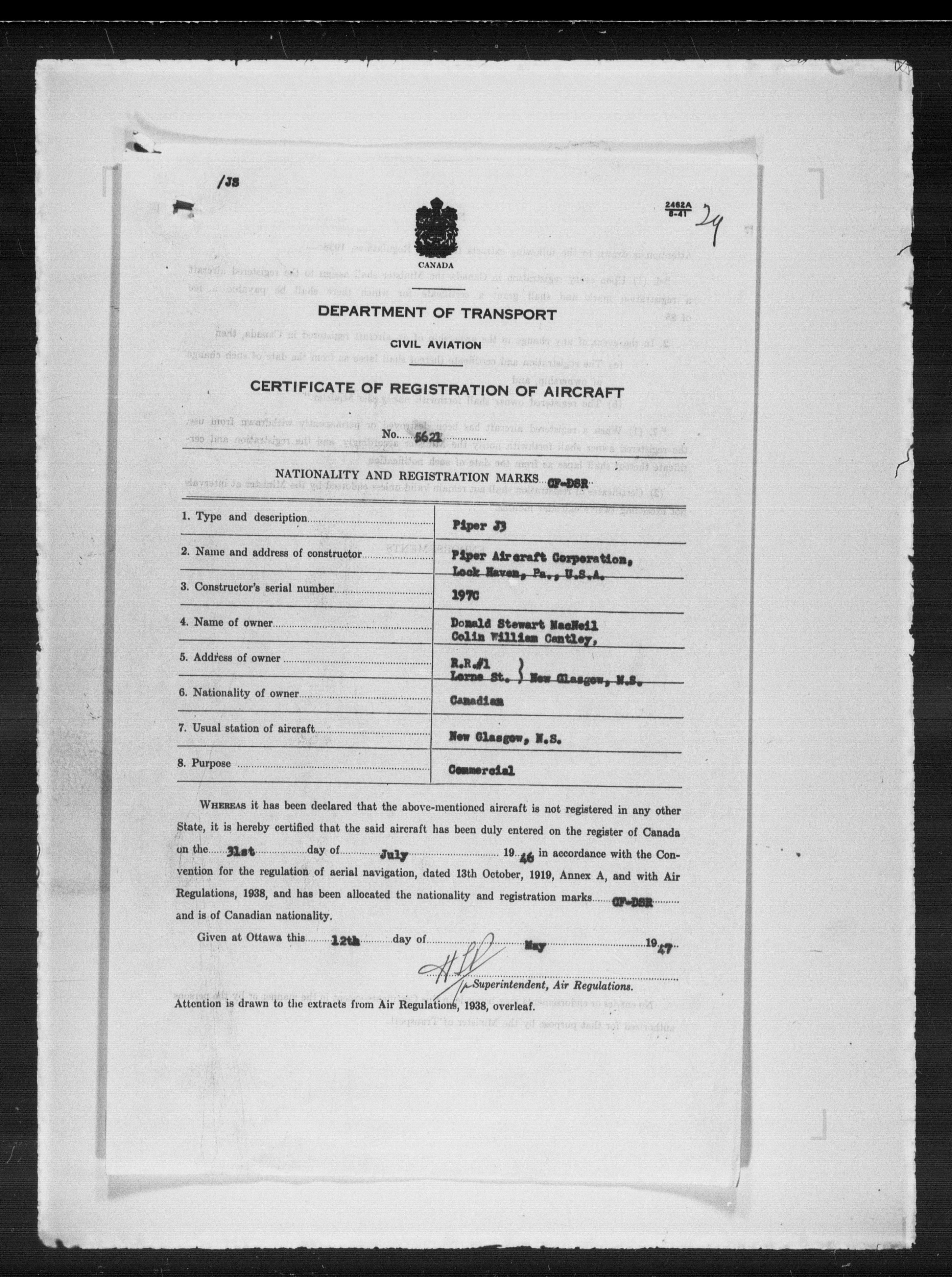 Department of Transport : Civil aircraft registration, inspection and operation files, block 5008, 1920-1986 - 7897