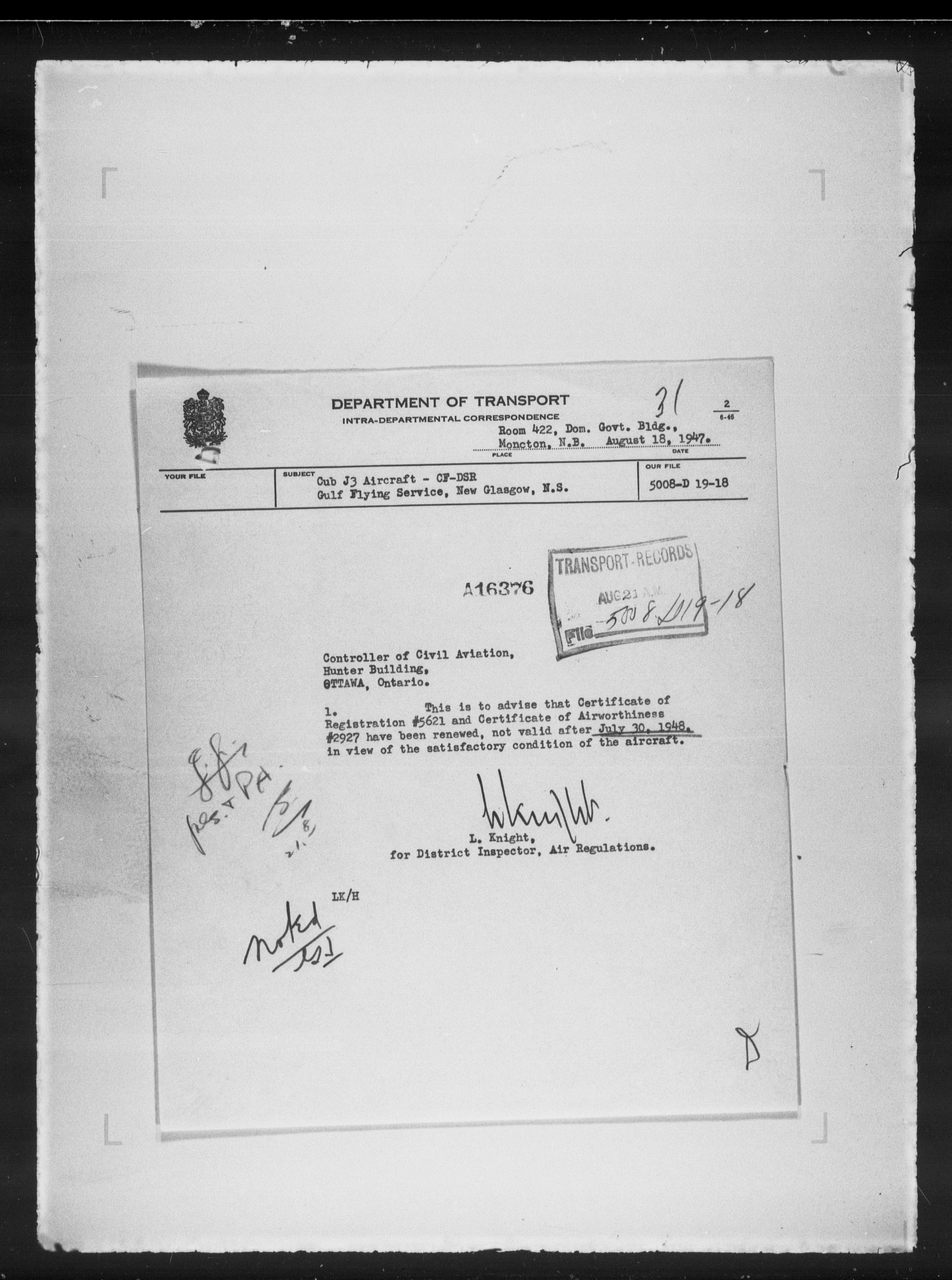 Department of Transport : Civil aircraft registration, inspection and operation files, block 5008, 1920-1986 - 7897