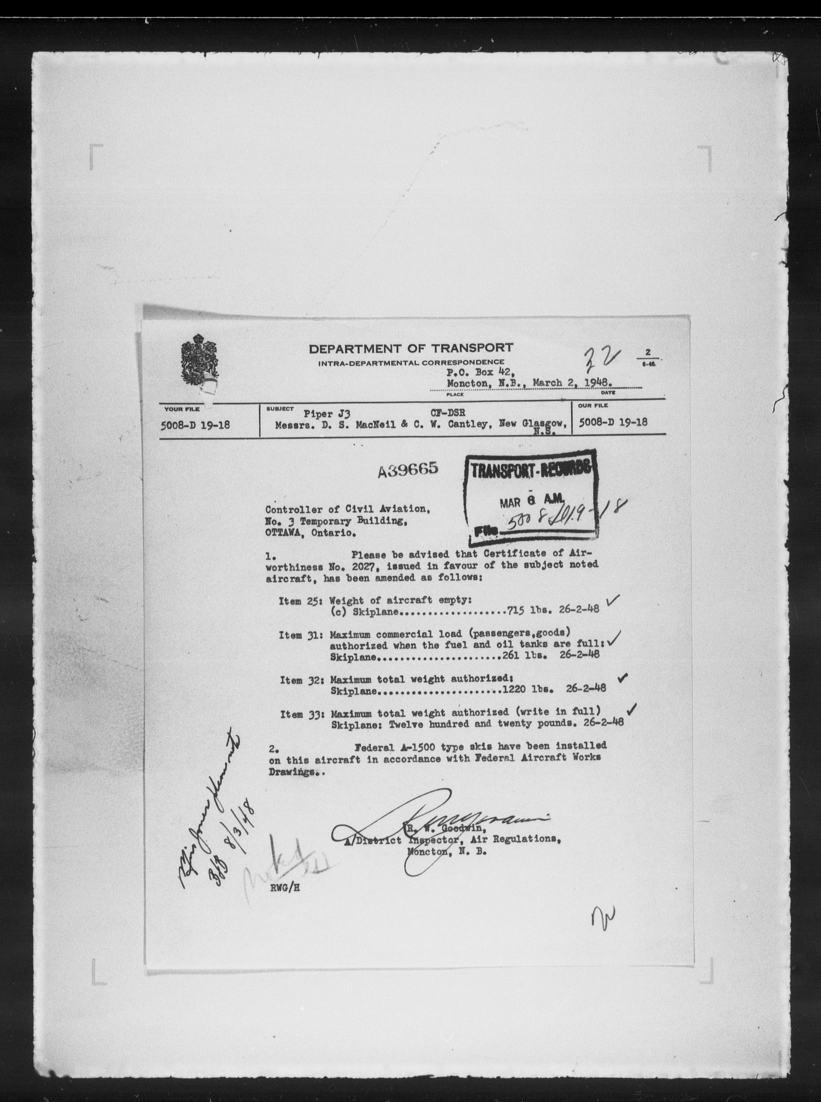 Department of Transport : Civil aircraft registration, inspection and operation files, block 5008, 1920-1986 - 7897