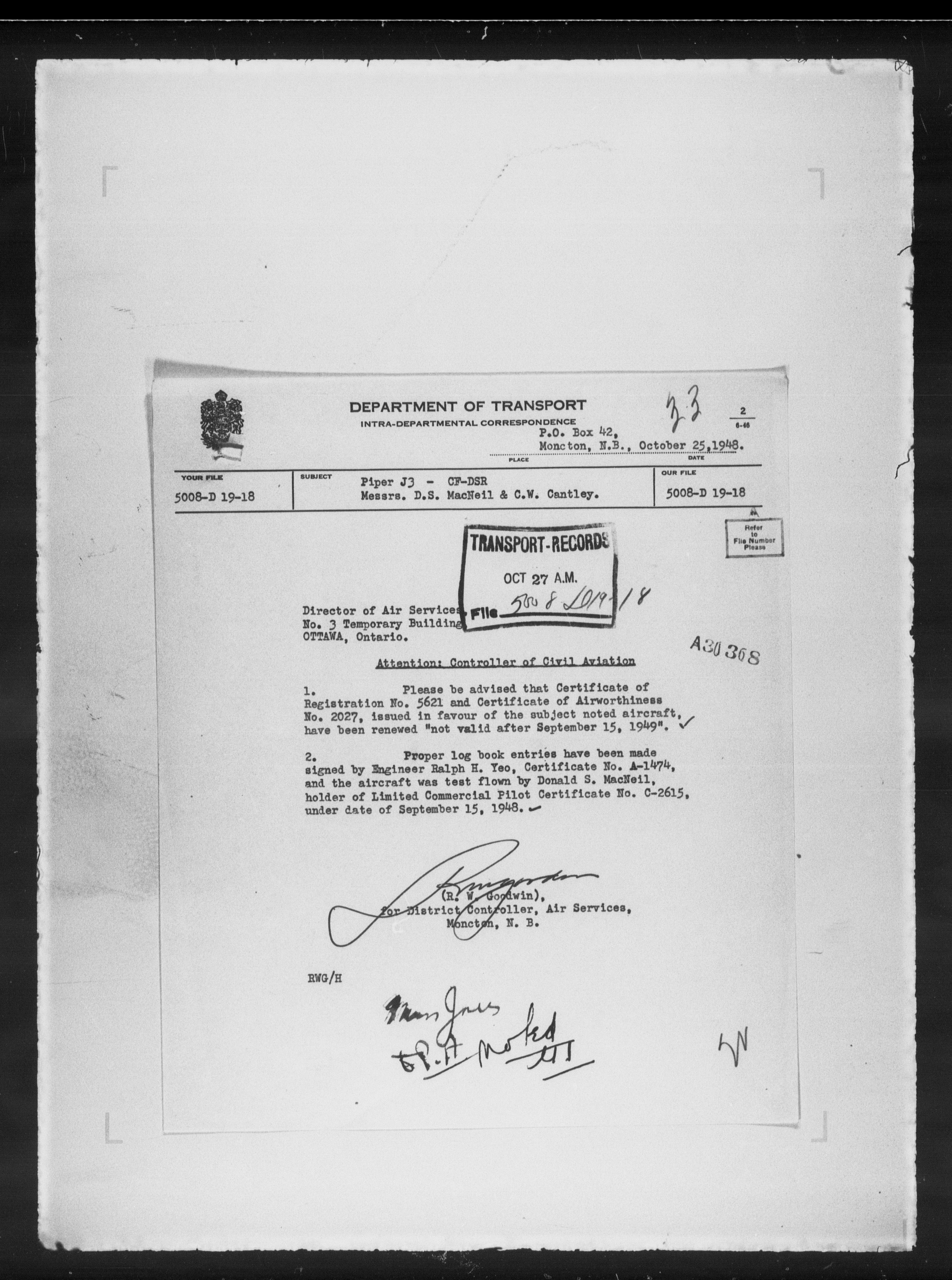 Department of Transport : Civil aircraft registration, inspection and operation files, block 5008, 1920-1986 - 7897