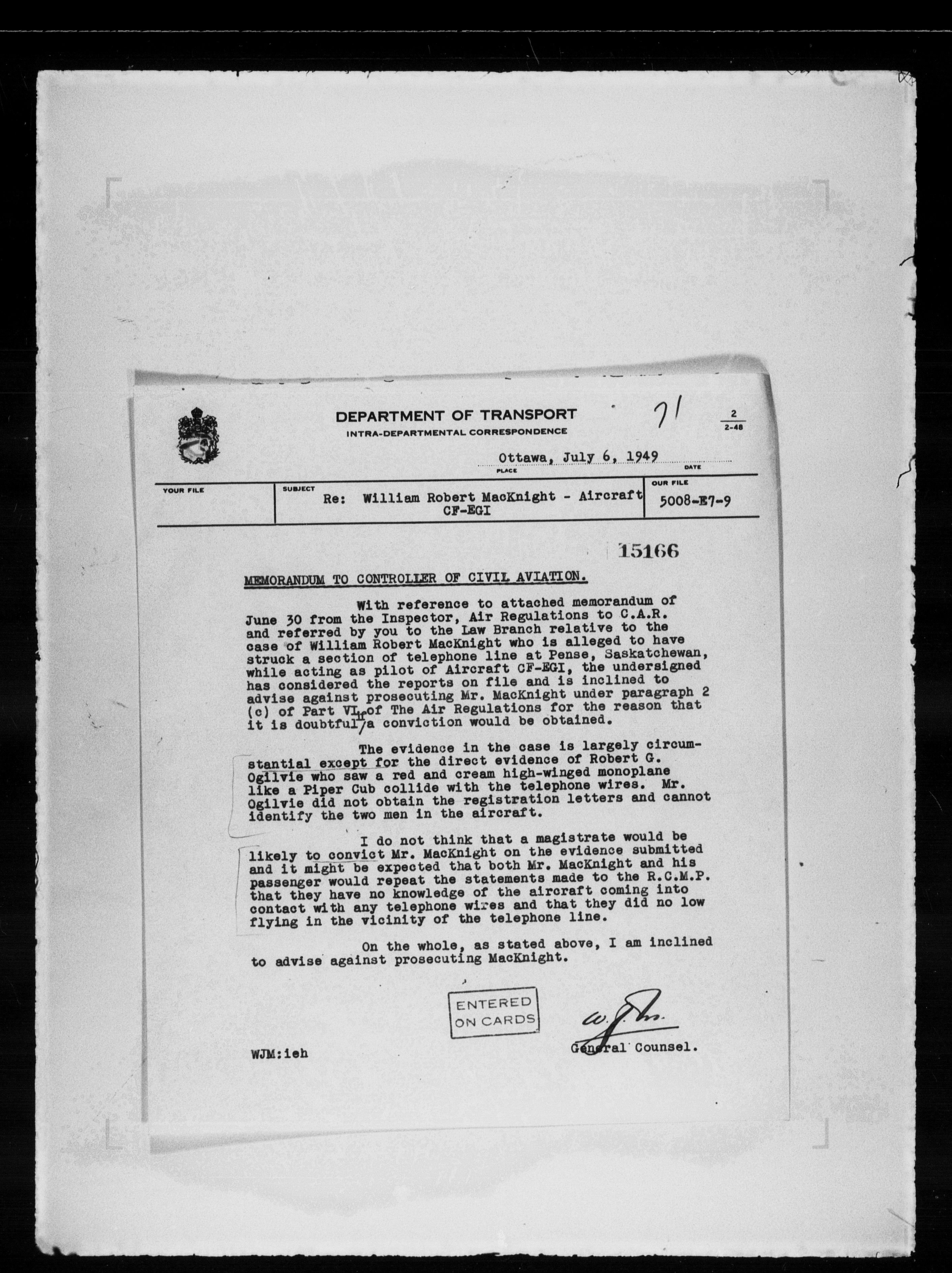 Department of Transport : Civil aircraft registration, inspection and operation files, block 5008, 1920-1986 - 7899