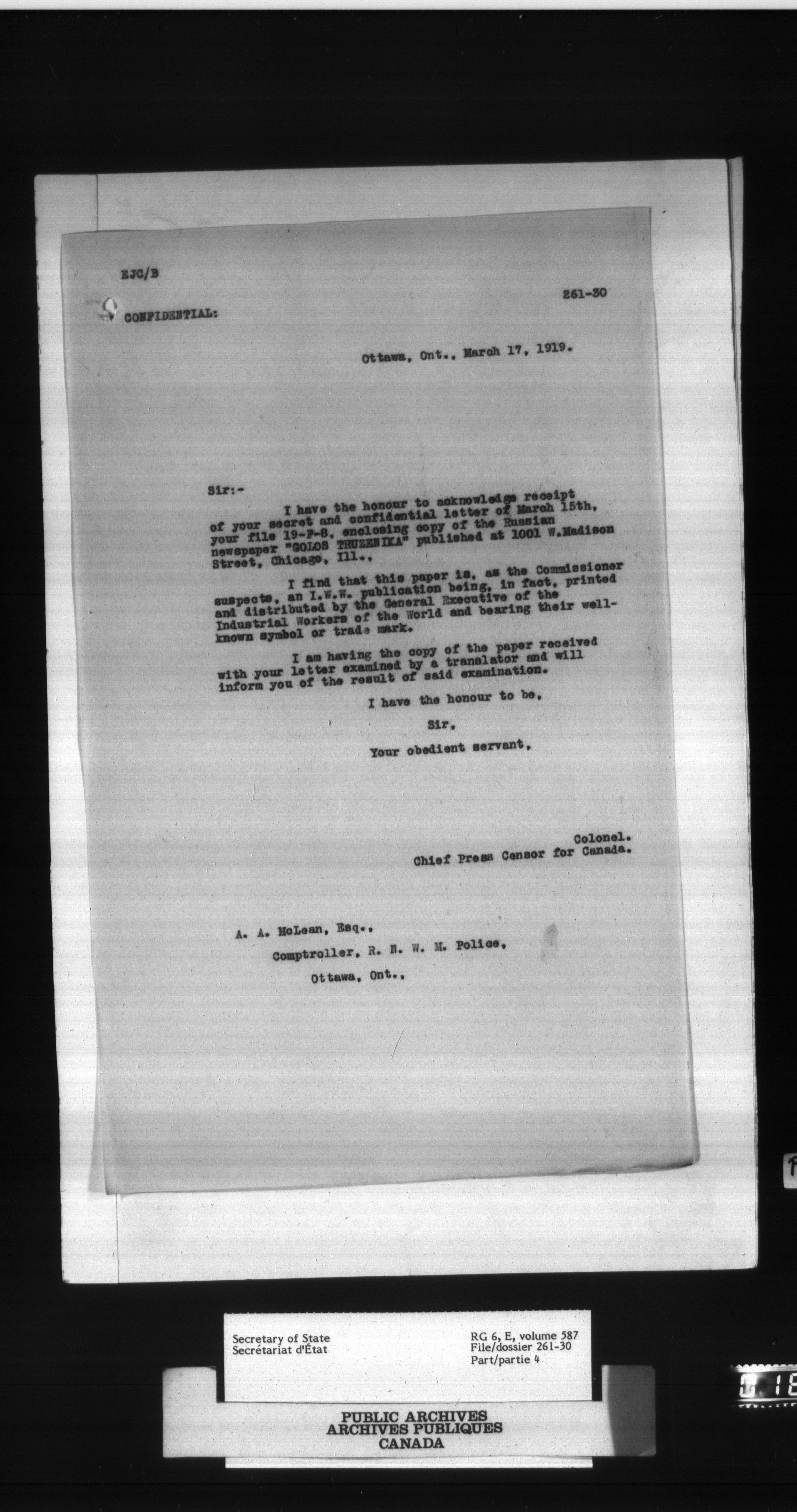 Secretary of State : Chief Press Censor, 1915-1920 - 79