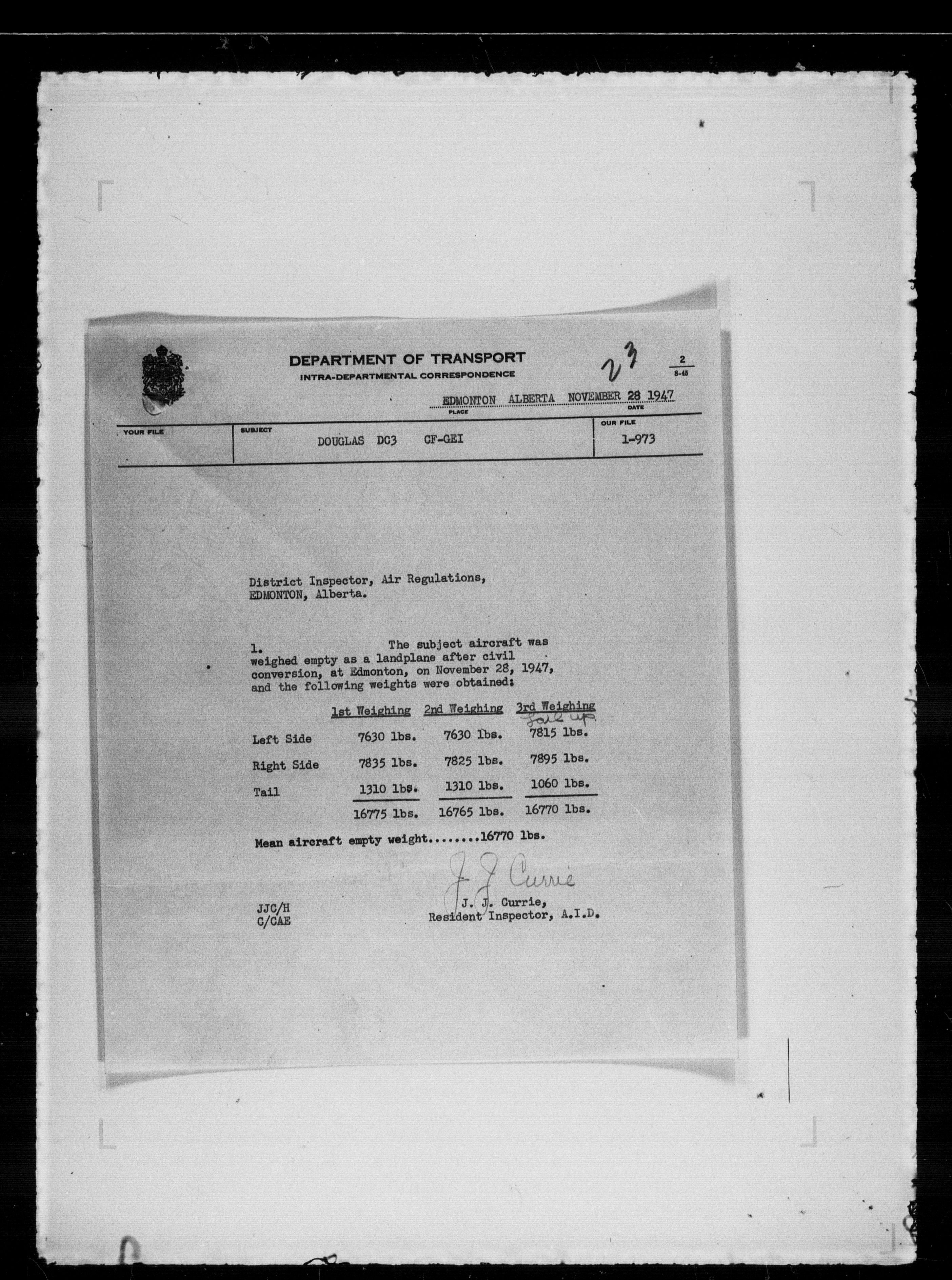 Department of Transport : Civil aircraft registration, inspection and operation files, block 5008, 1920-1986 - 7908