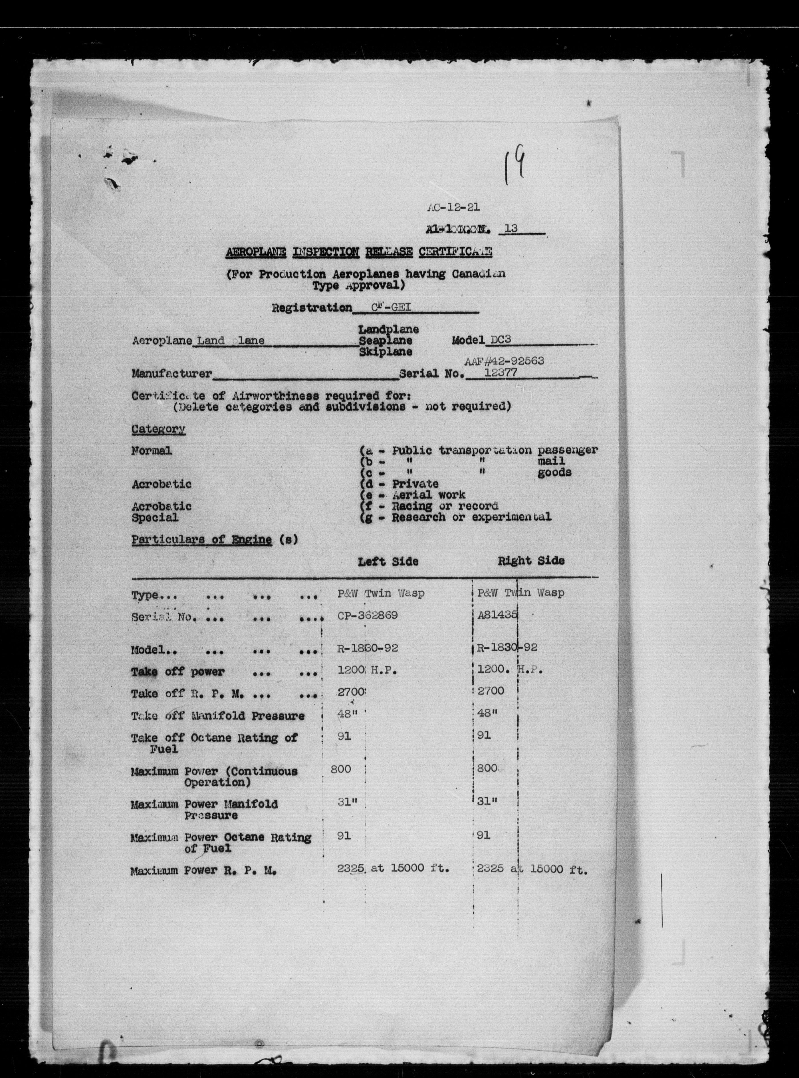 Department of Transport : Civil aircraft registration, inspection and operation files, block 5008, 1920-1986 - 7908
