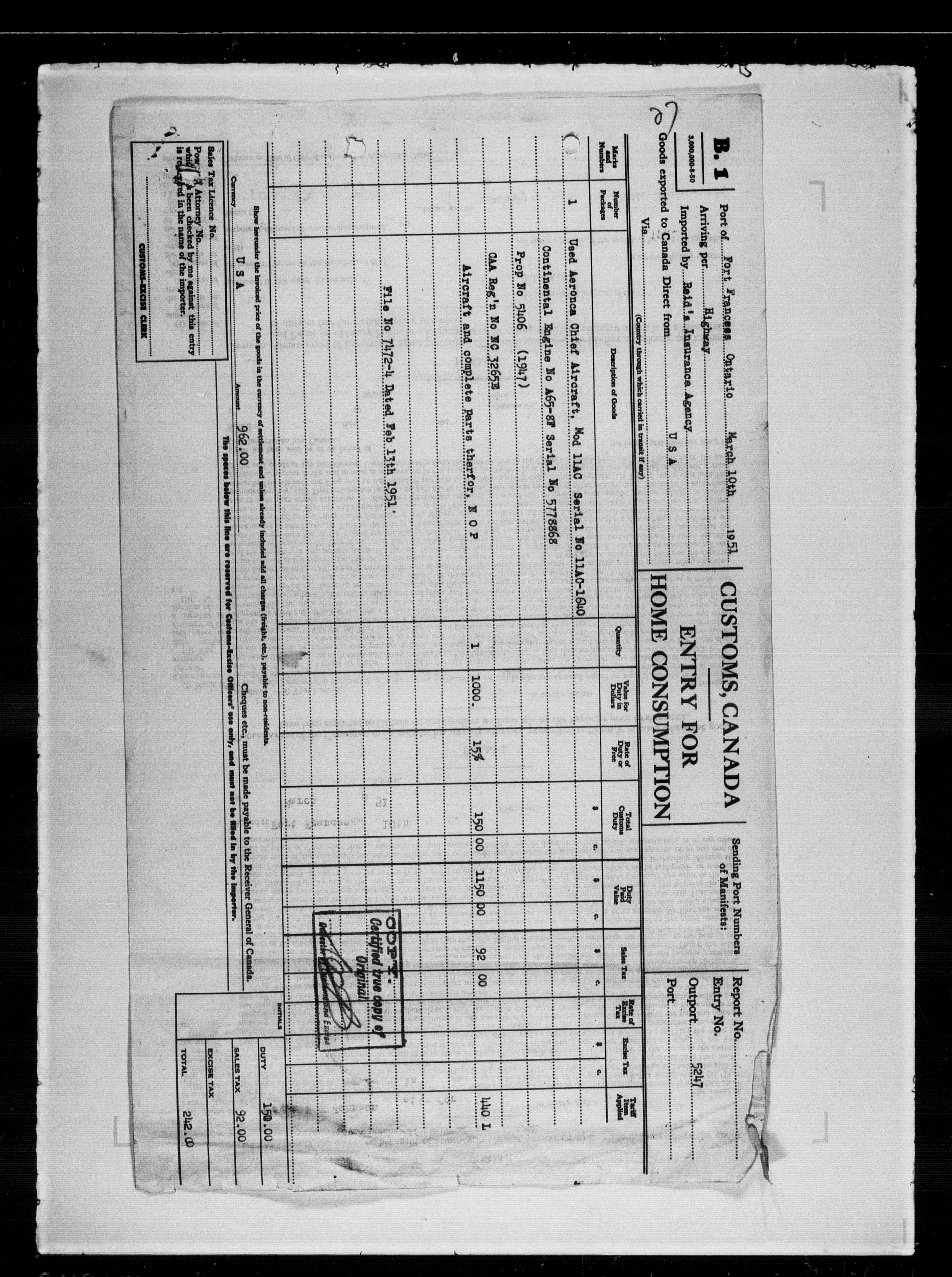 Department of Transport : Civil aircraft registration, inspection and operation files, block 5008, 1920-1986 - 7909