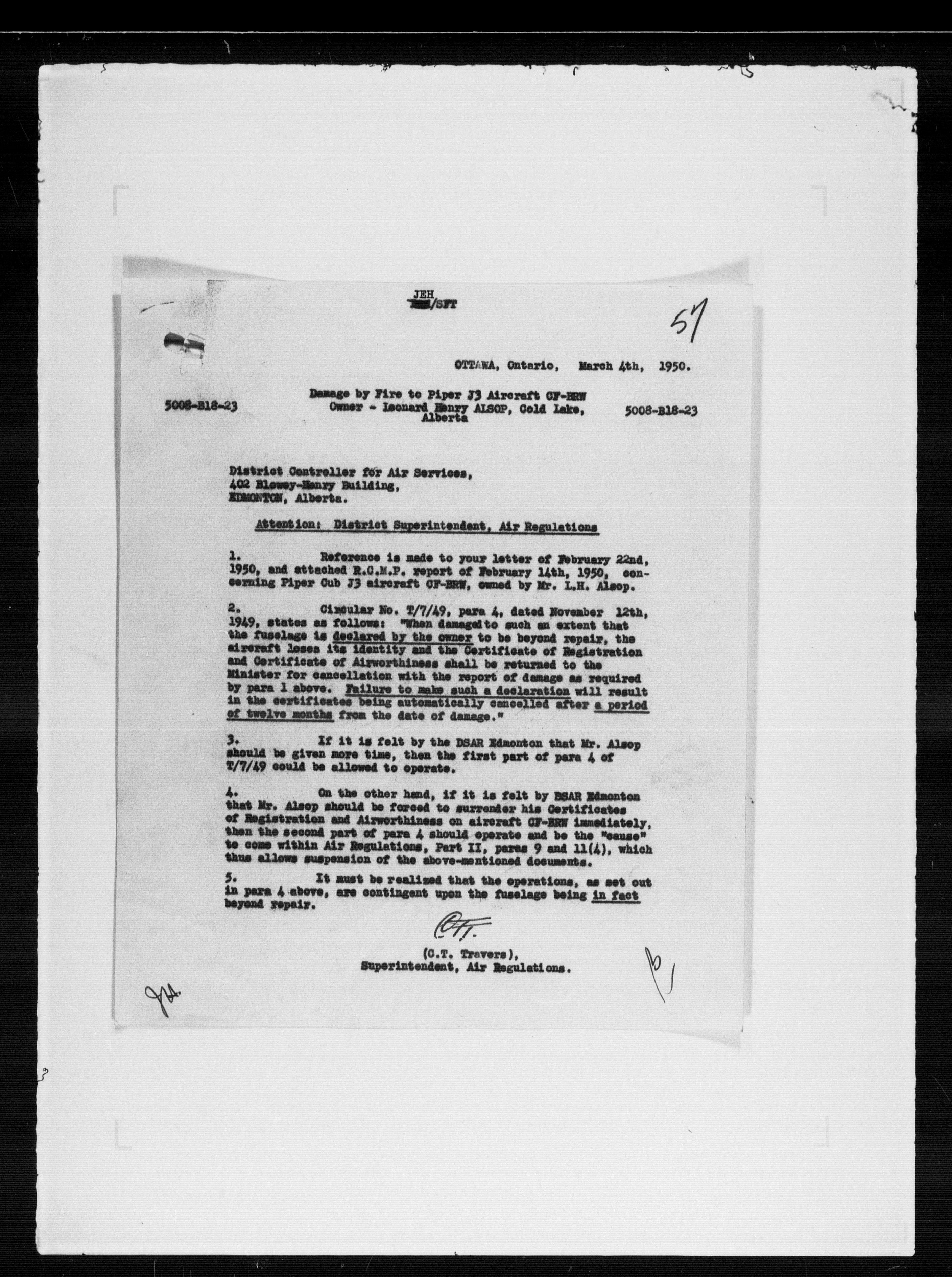 Department of Transport : Civil aircraft registration, inspection and operation files, block 5008, 1920-1986 - 7911