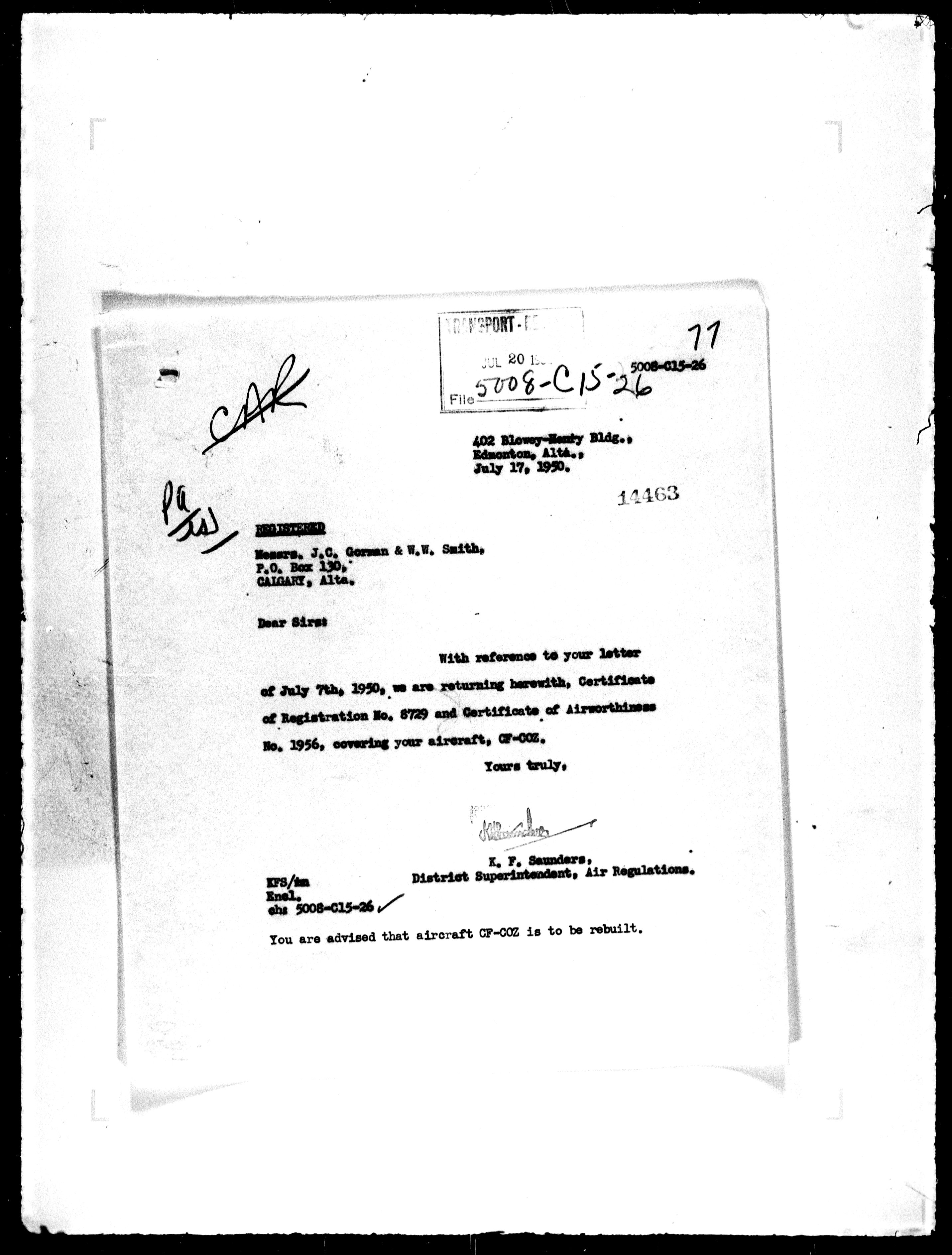Department of Transport : Civil aircraft registration, inspection and operation files, block 5008, 1920-1986 - 7912