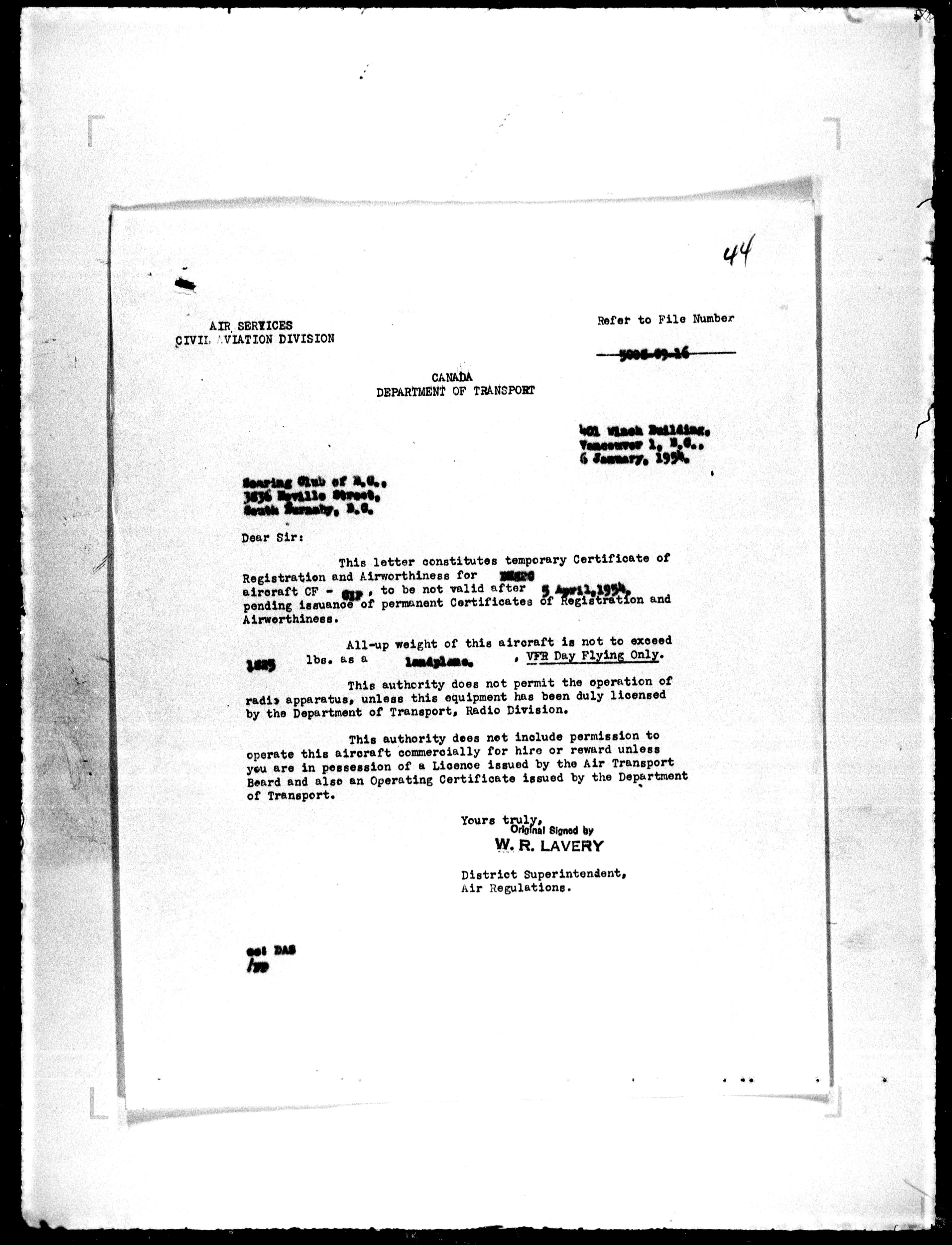 Department of Transport : Civil aircraft registration, inspection and operation files, block 5008, 1920-1986 - 7912