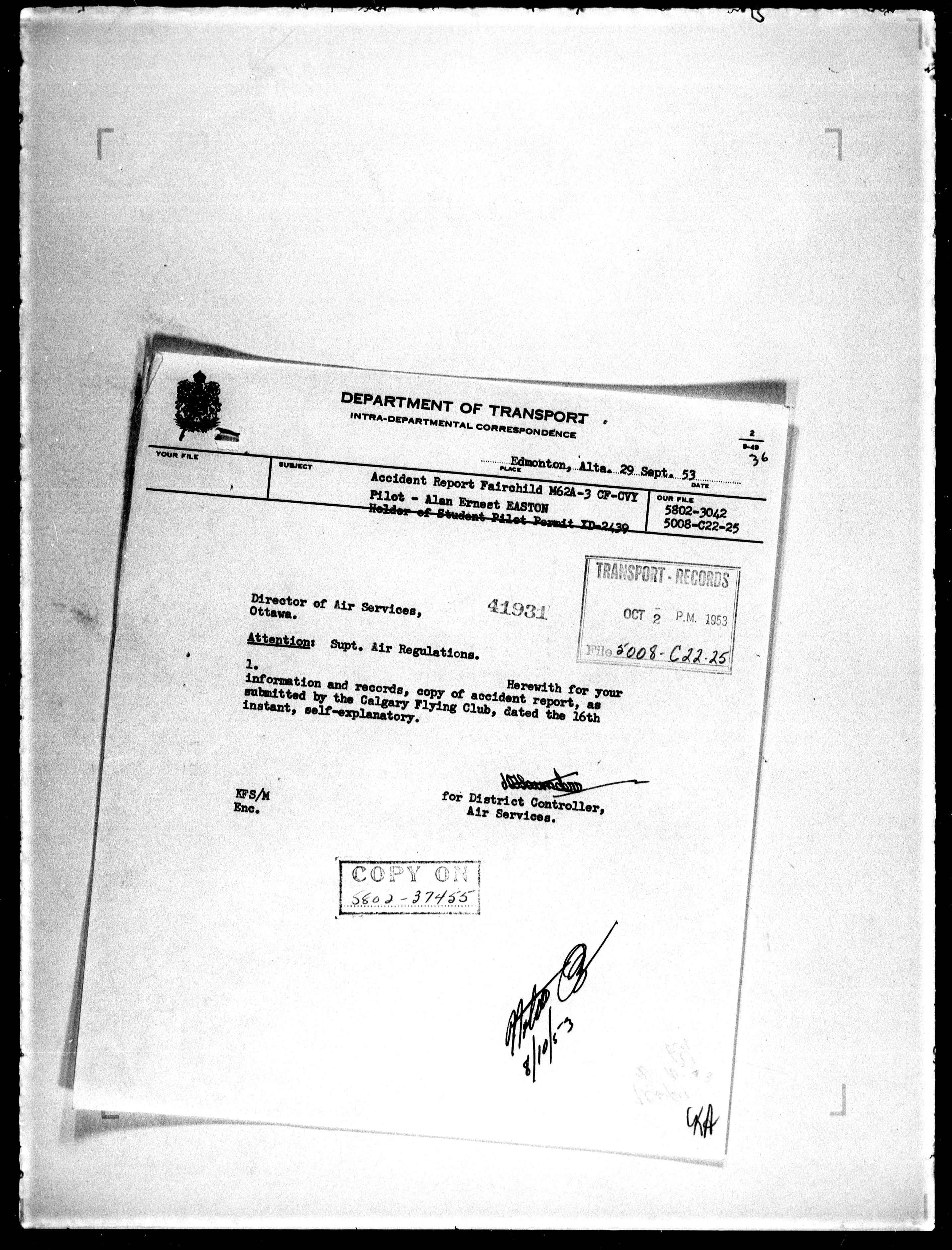 Department of Transport : Civil aircraft registration, inspection and operation files, block 5008, 1920-1986 - 7914