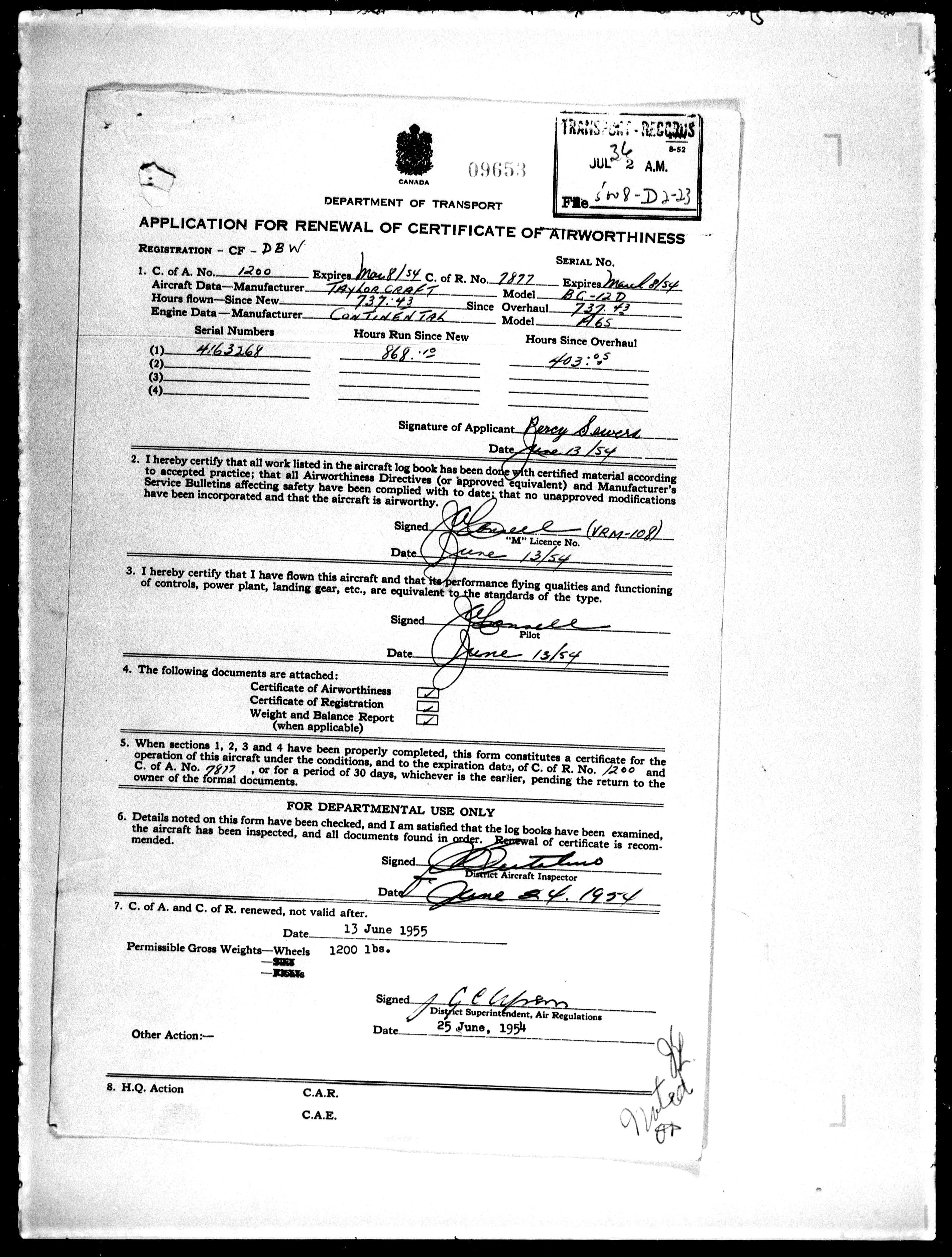 Department of Transport : Civil aircraft registration, inspection and operation files, block 5008, 1920-1986 - 7914