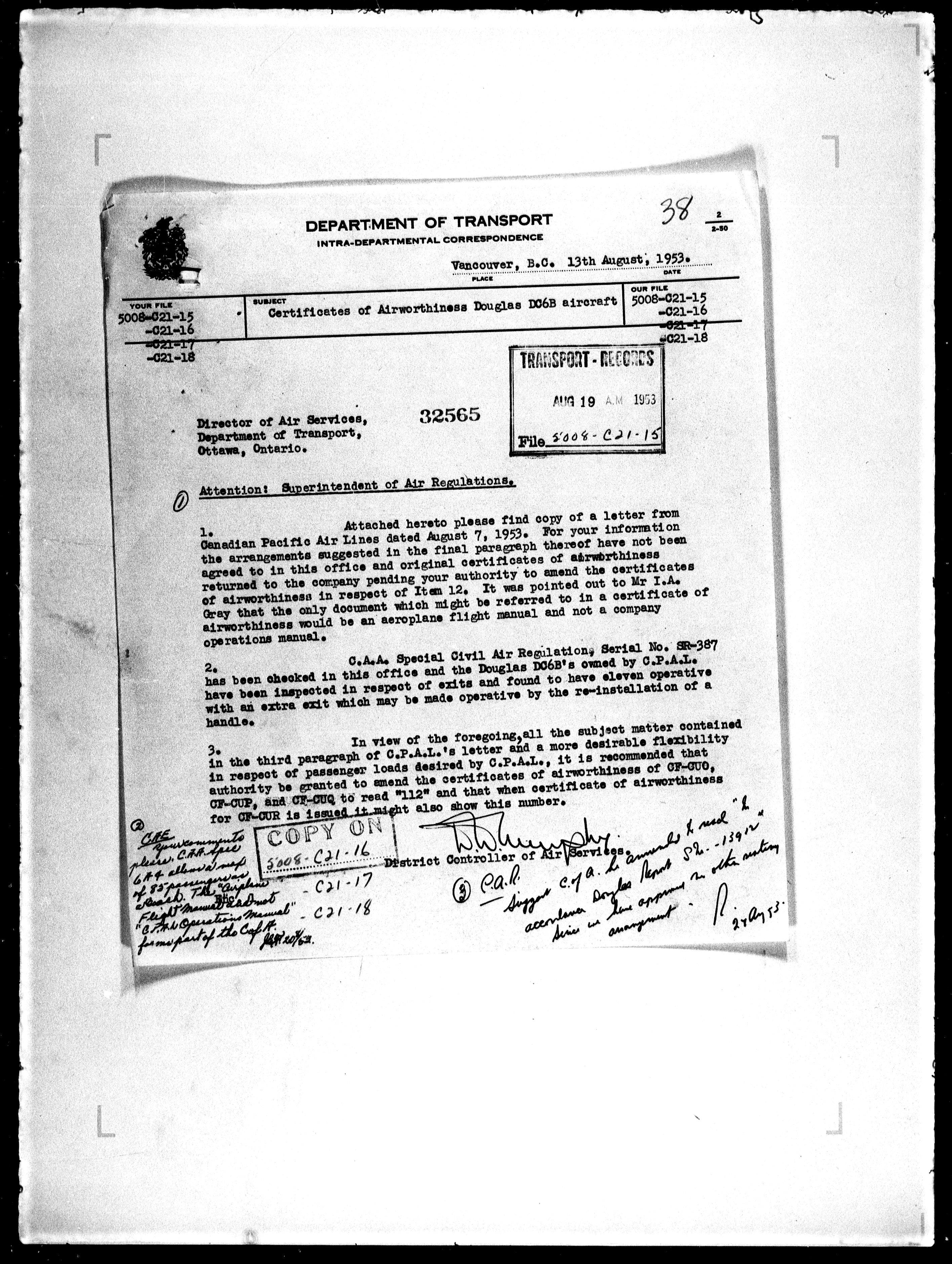 Department of Transport : Civil aircraft registration, inspection and operation files, block 5008, 1920-1986 - 7914