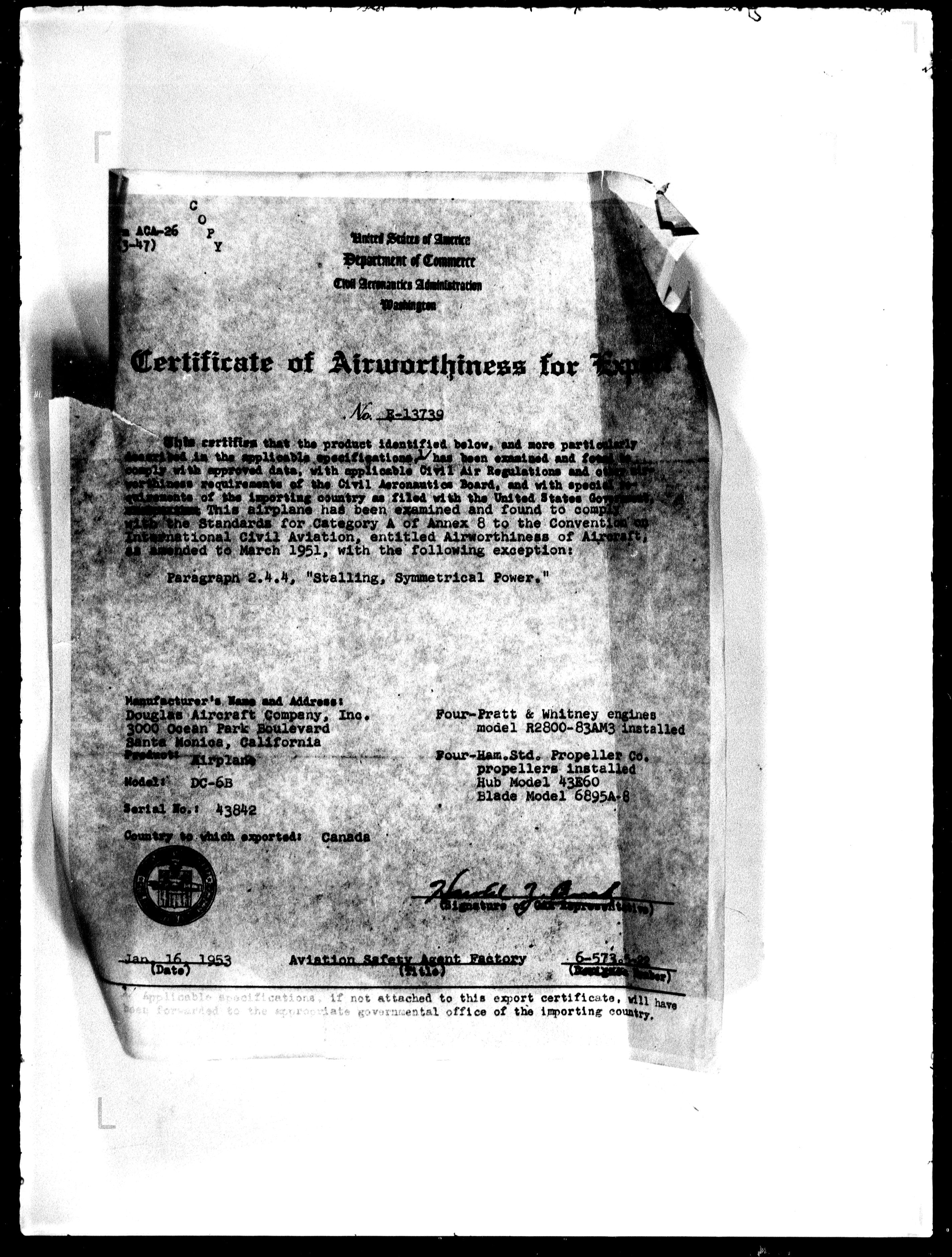 Department of Transport : Civil aircraft registration, inspection and operation files, block 5008, 1920-1986 - 7914