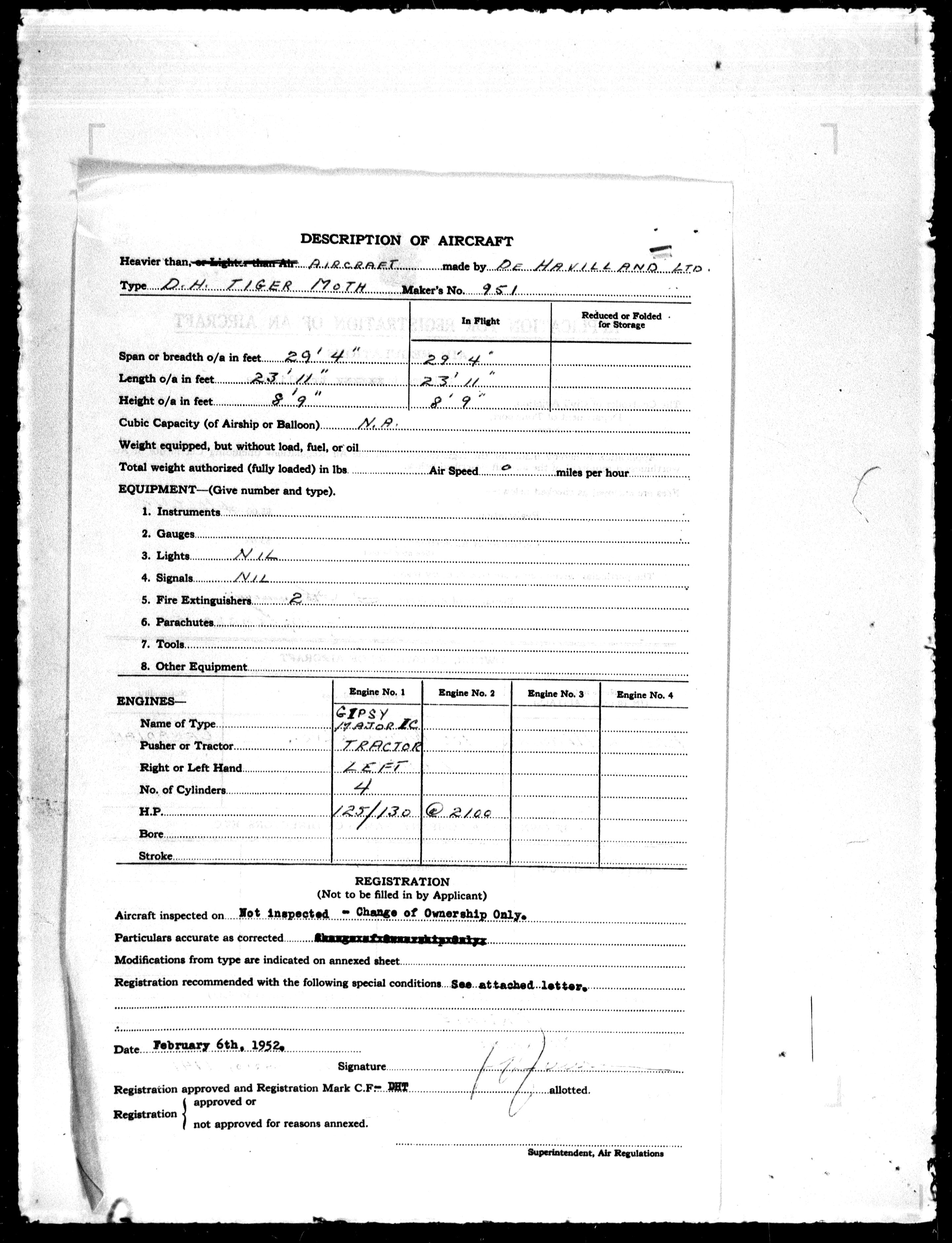 Department of Transport : Civil aircraft registration, inspection and operation files, block 5008, 1920-1986 - 7915