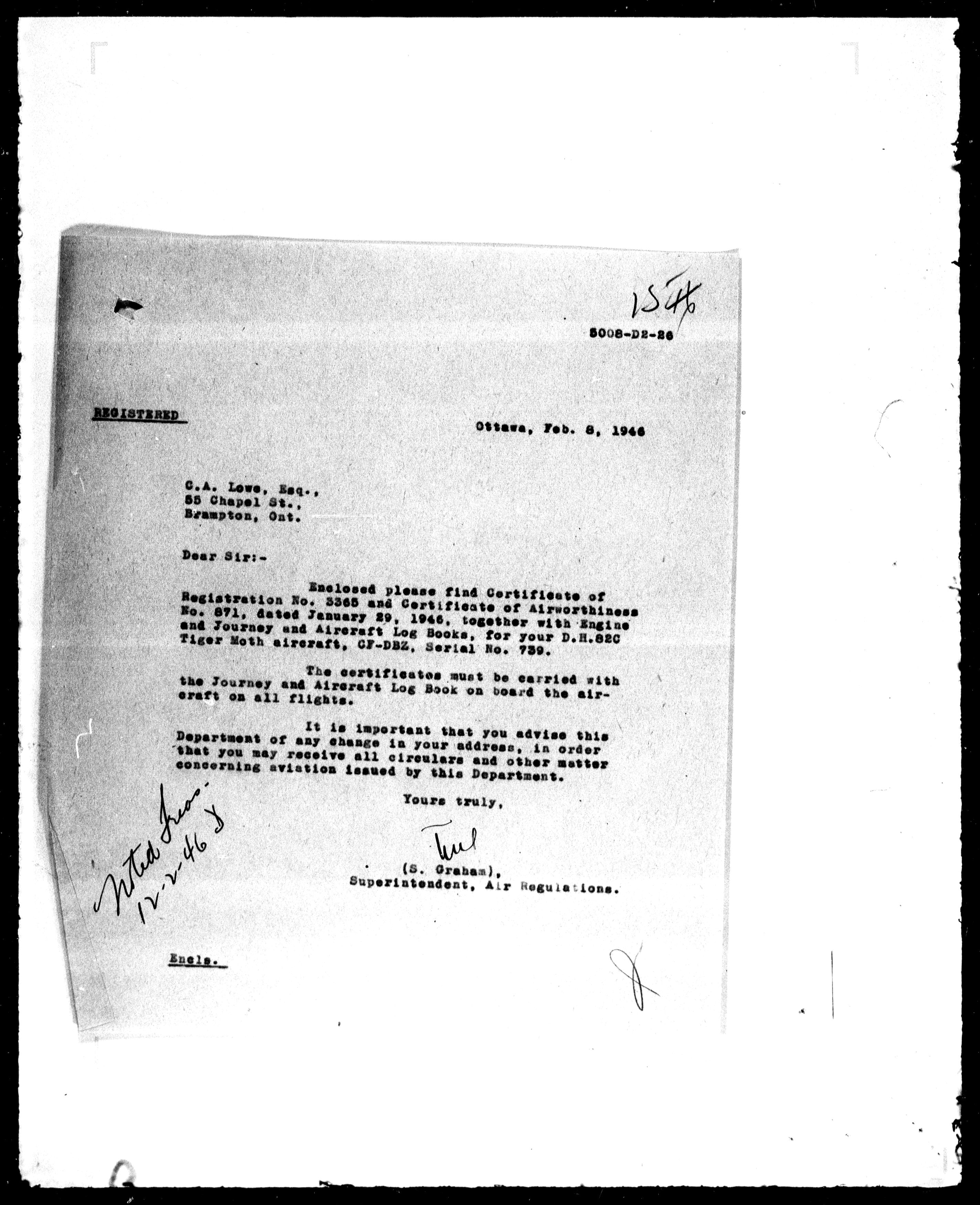 Department of Transport : Civil aircraft registration, inspection and operation files, block 5008, 1920-1986 - 7915