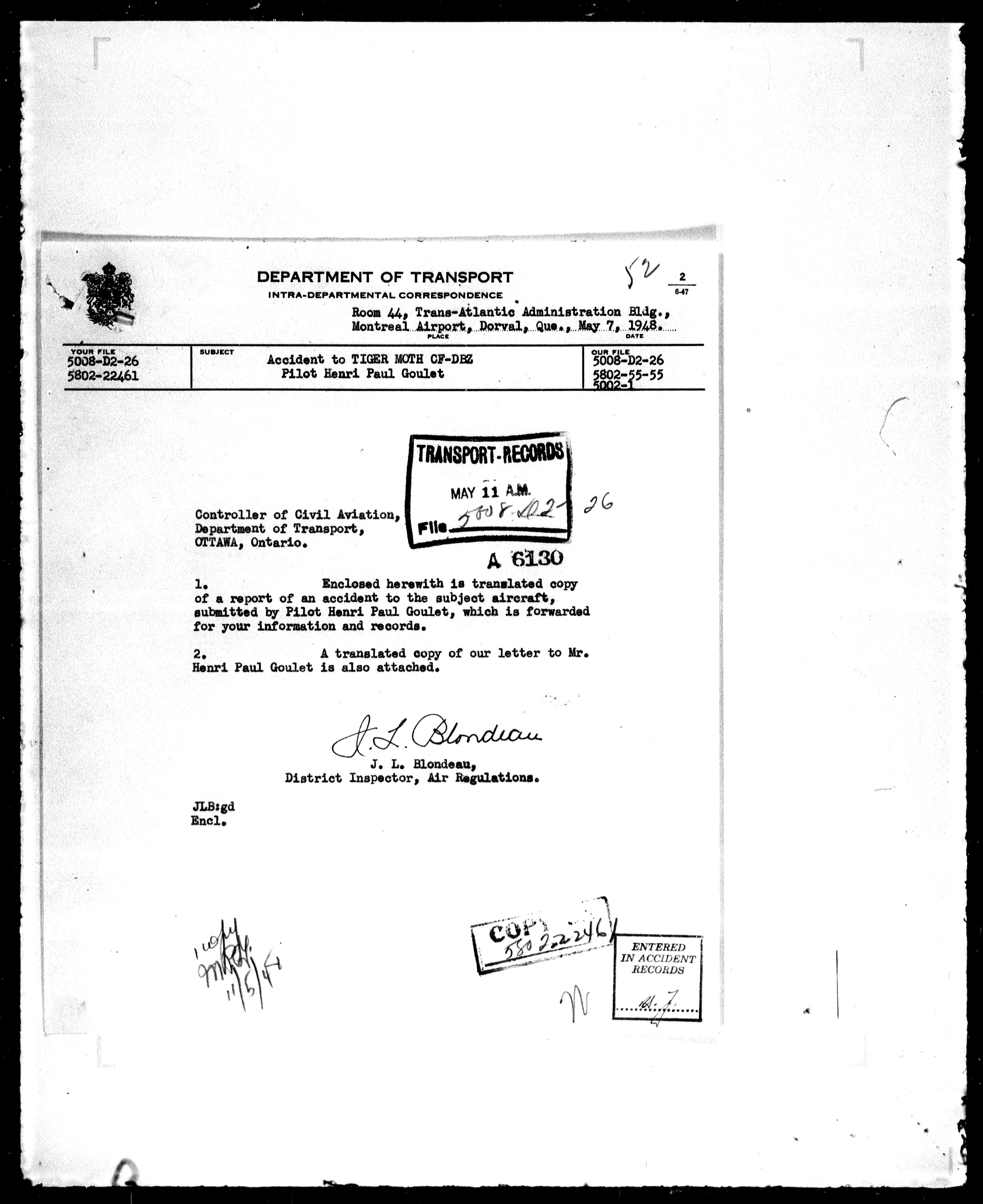 Department of Transport : Civil aircraft registration, inspection and operation files, block 5008, 1920-1986 - 7915