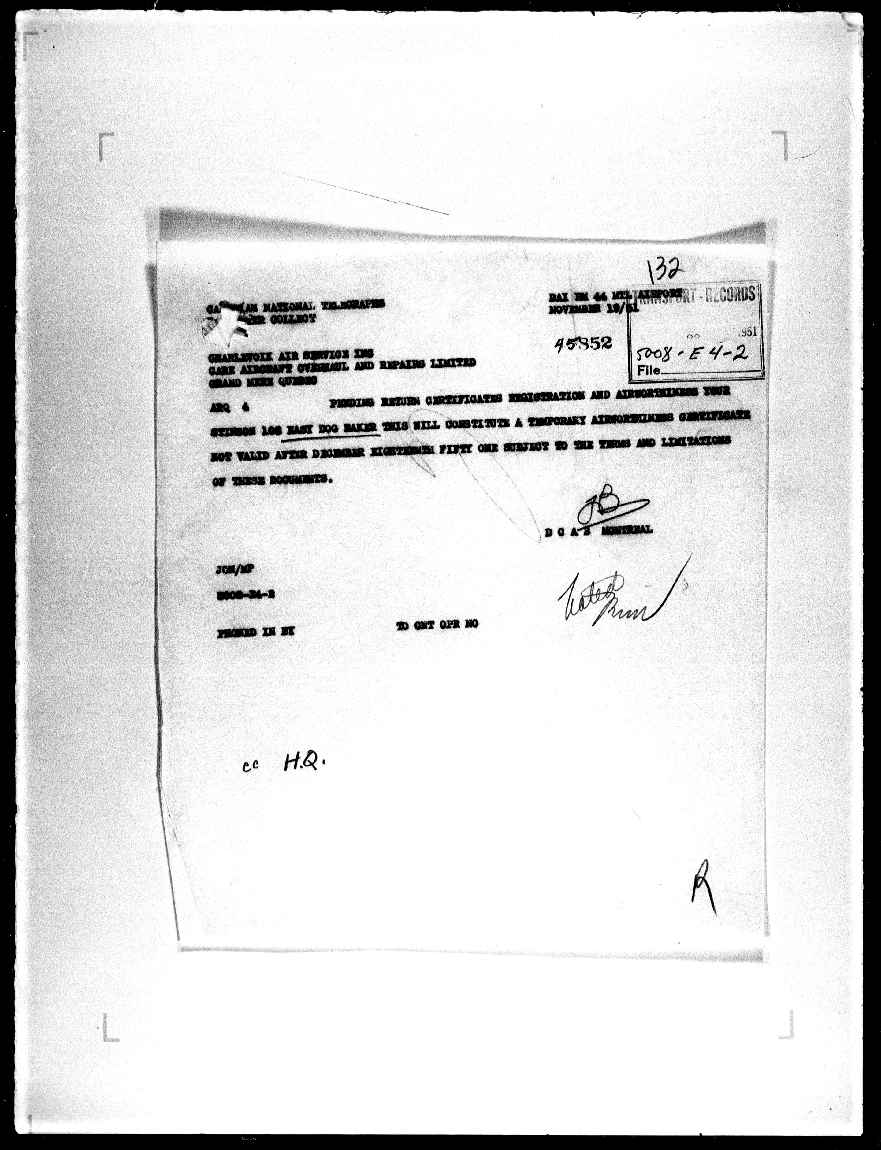 Department of Transport : Civil aircraft registration, inspection and operation files, block 5008, 1920-1986 - 7919