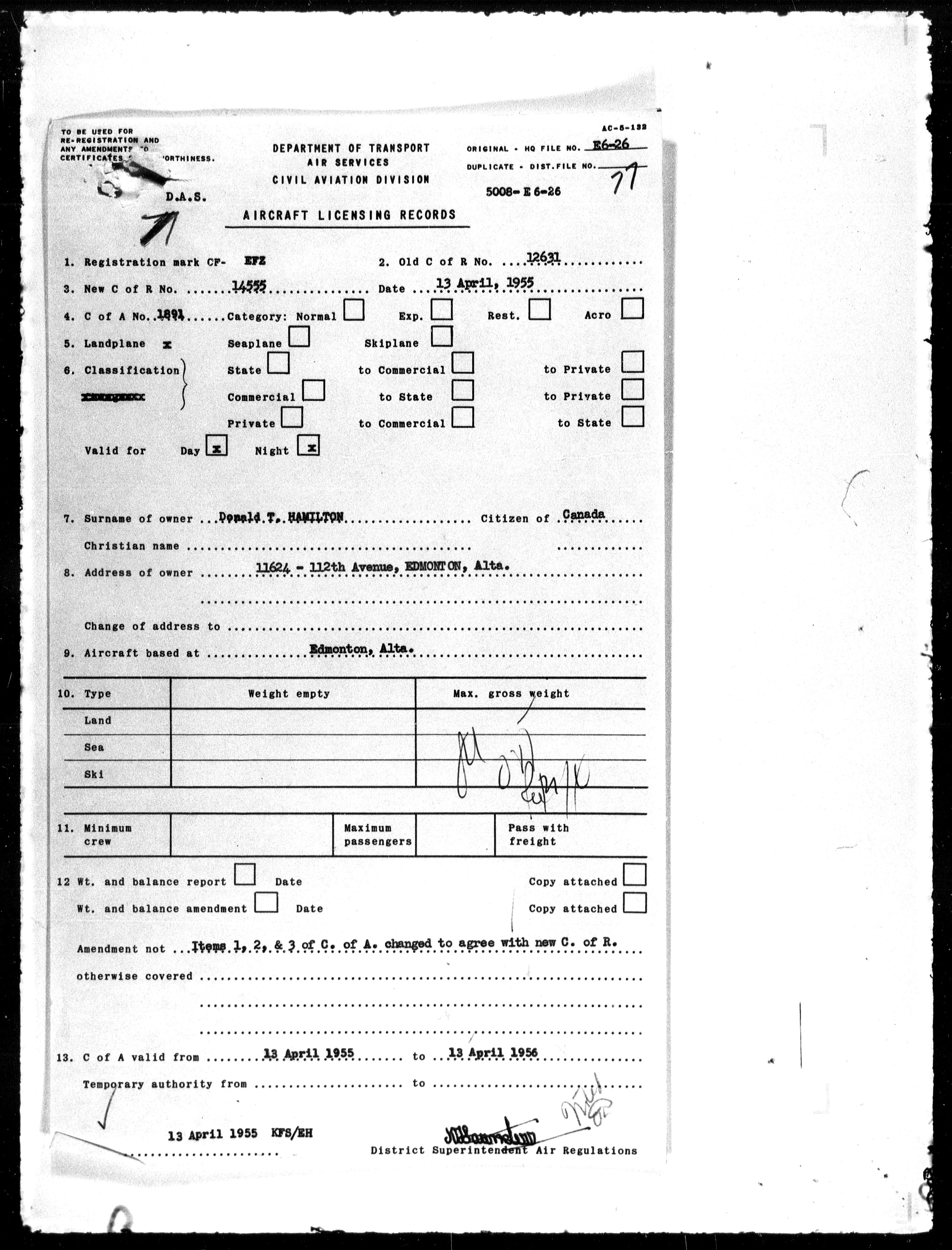 Department of Transport : Civil aircraft registration, inspection and operation files, block 5008, 1920-1986 - 7920