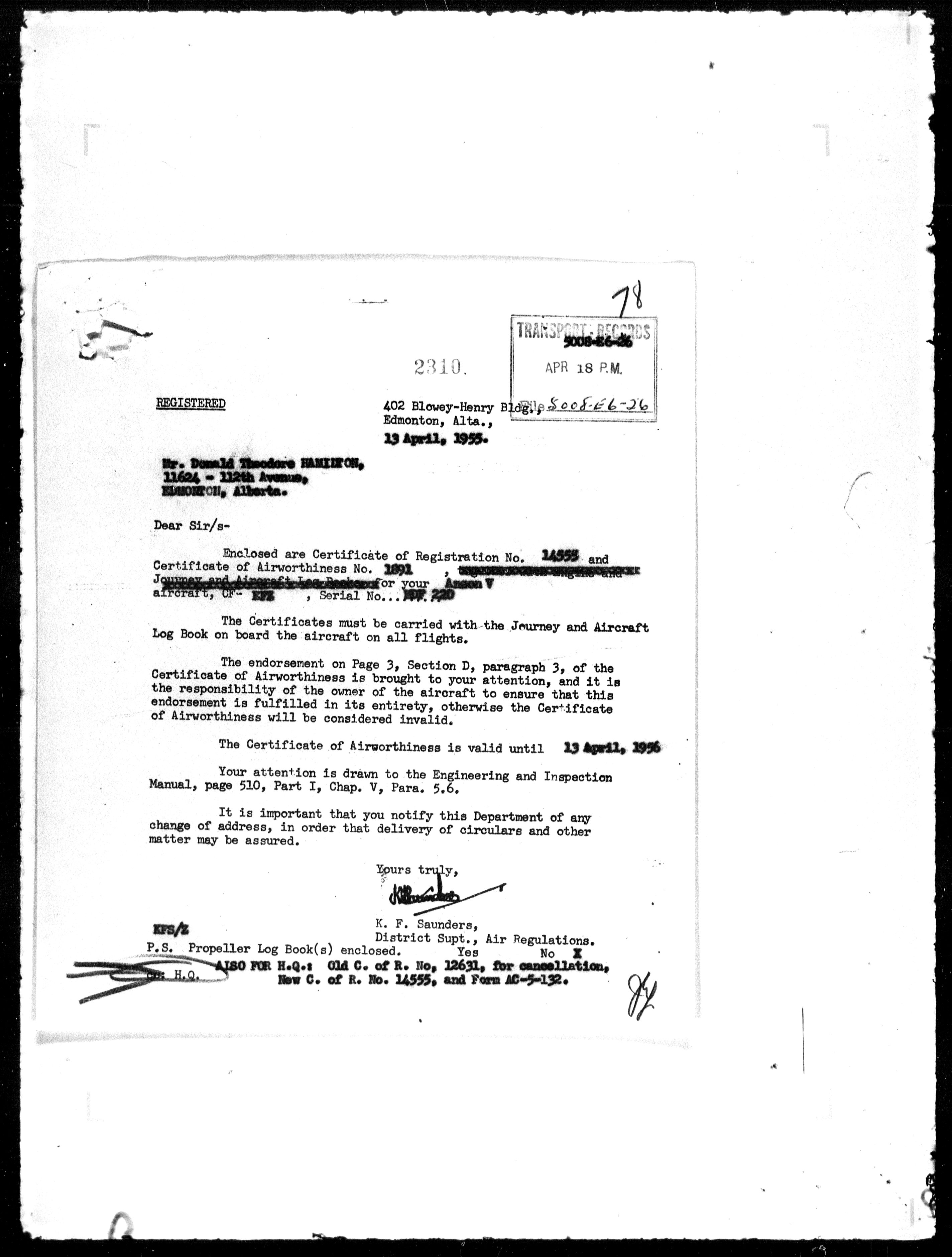 Department of Transport : Civil aircraft registration, inspection and operation files, block 5008, 1920-1986 - 7920